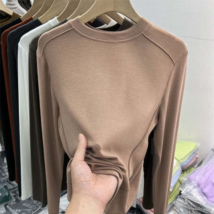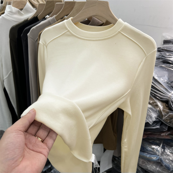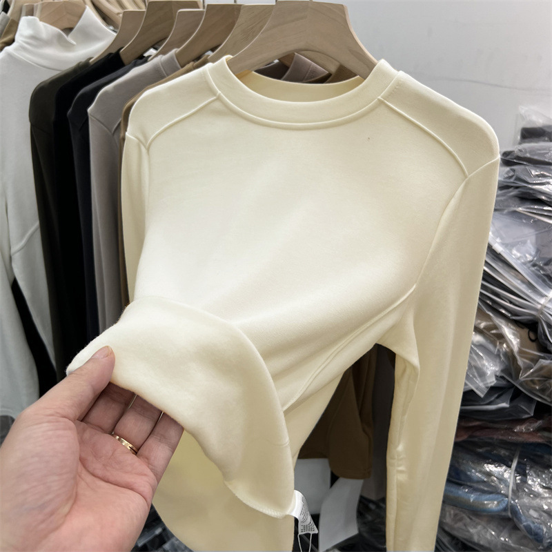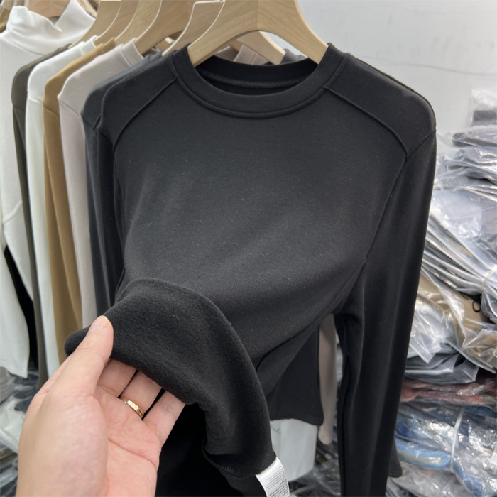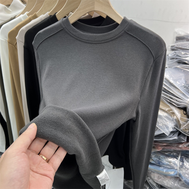 MO07 # 틈새 세련된 Fishbone 긴팔 티셔츠 여성의 가을과 겨울 새로운 내부 탑 슬림 핏 벨벳 바닥 셔츠