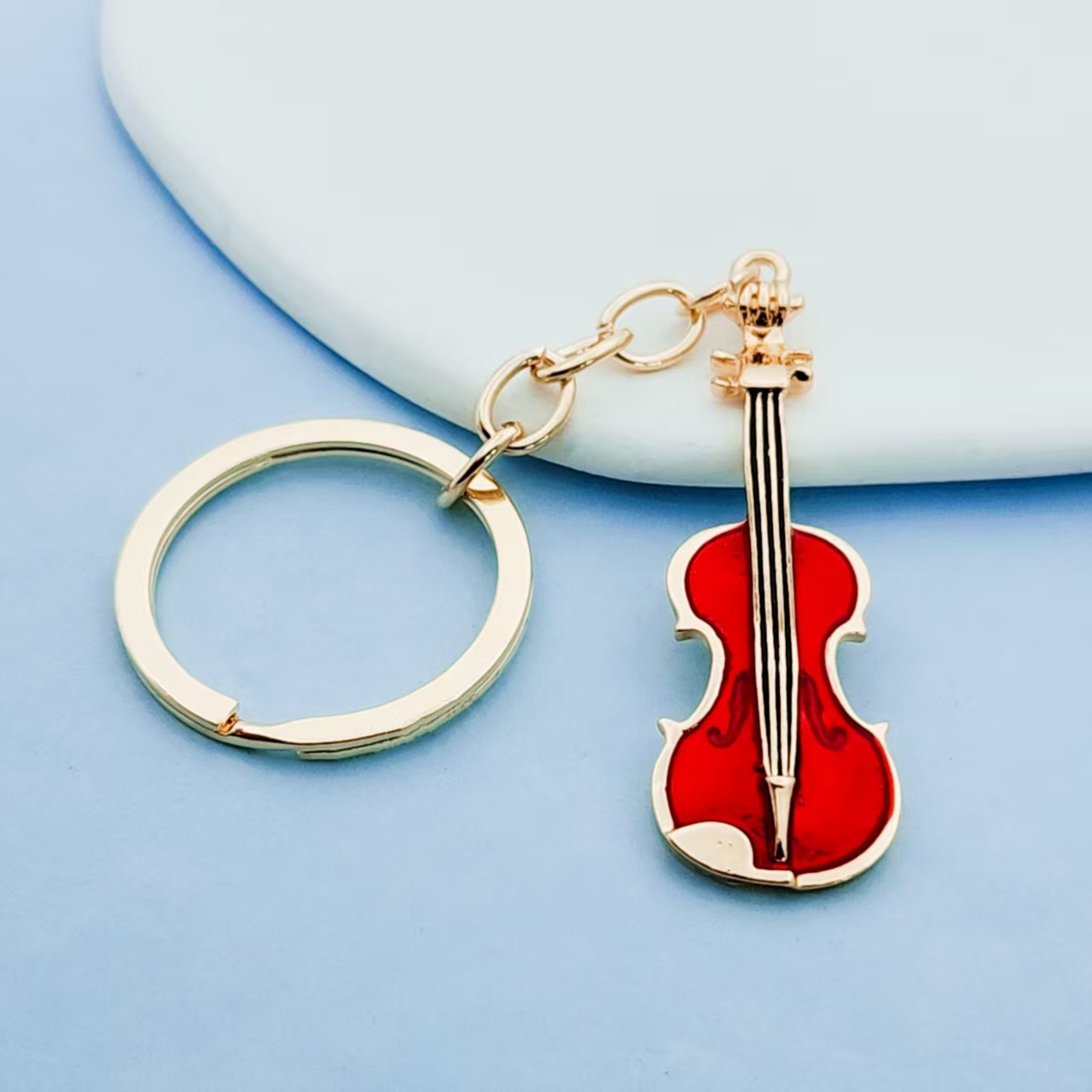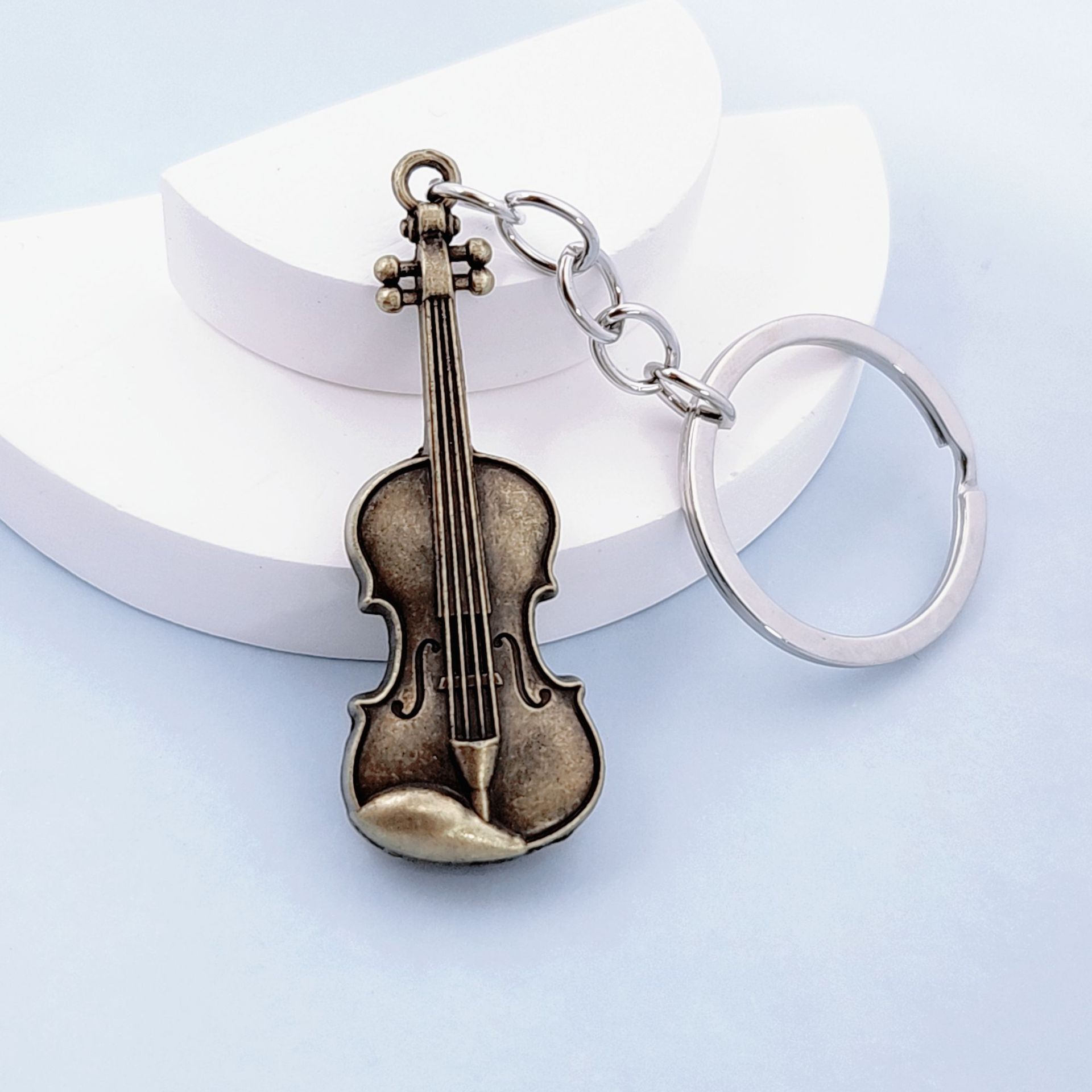 复古吉他小提琴金属钥匙扣创意个性钥匙圈链挂件配饰跨境饰品批发