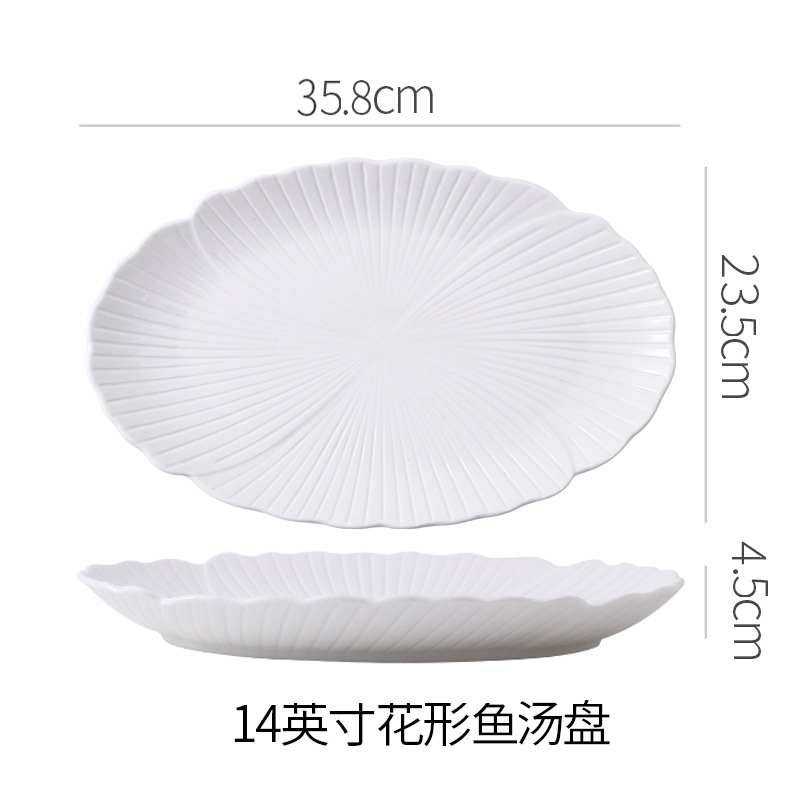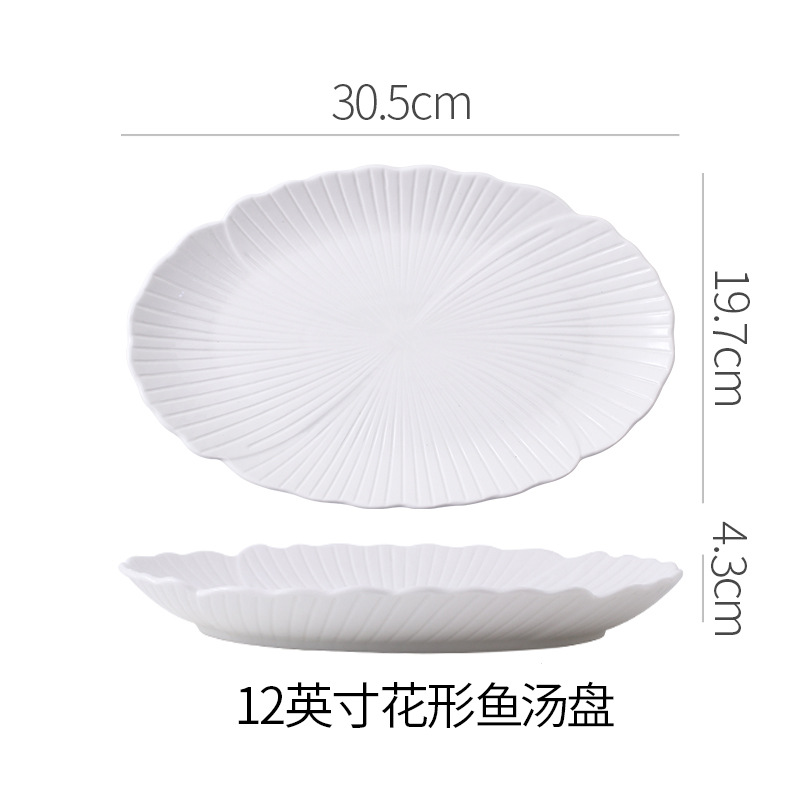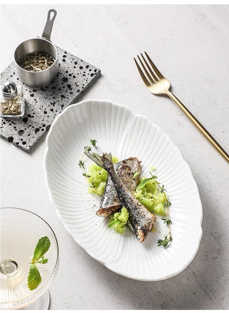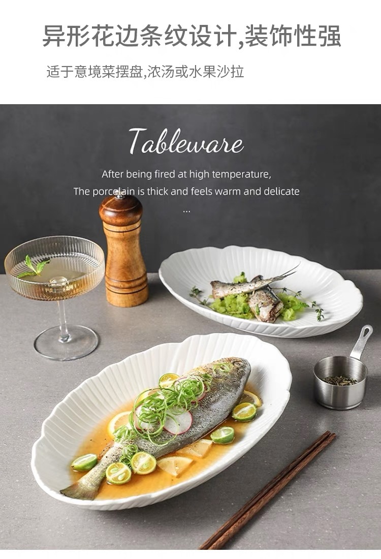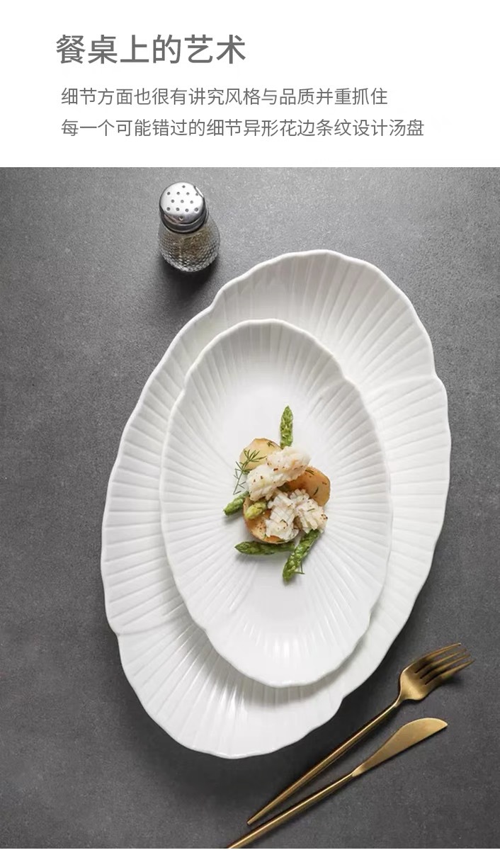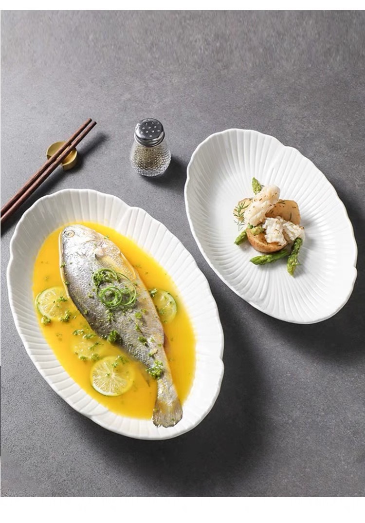 순백색 세라믹 생선찜 접시, 가정용 특별 수프 접시, 야채 접시, 타원형 접시, 심플한 줄무늬, 고급 호텔 식기스토어 가기