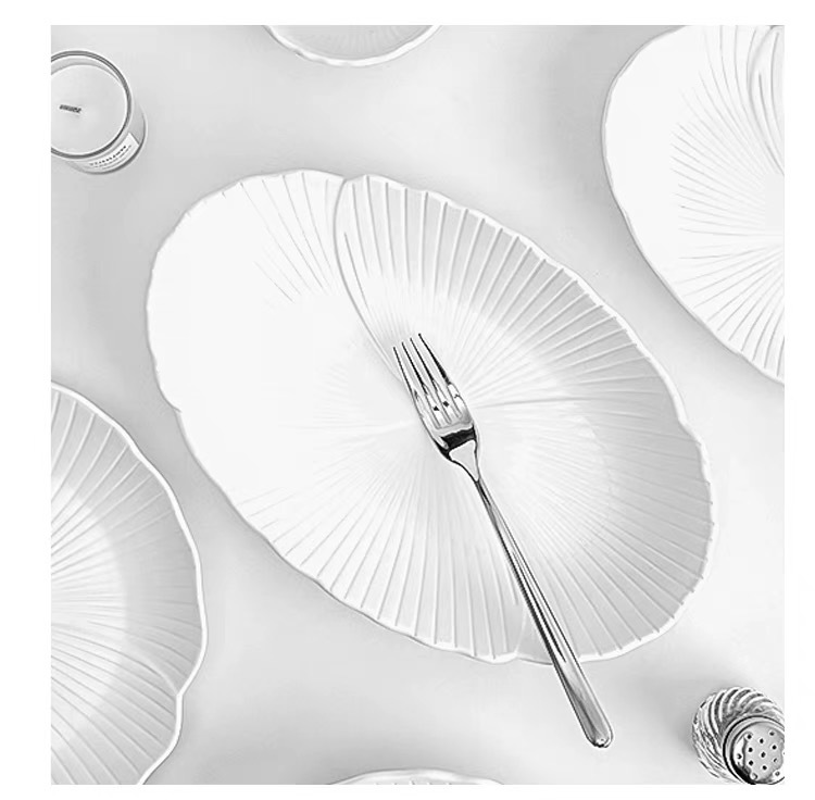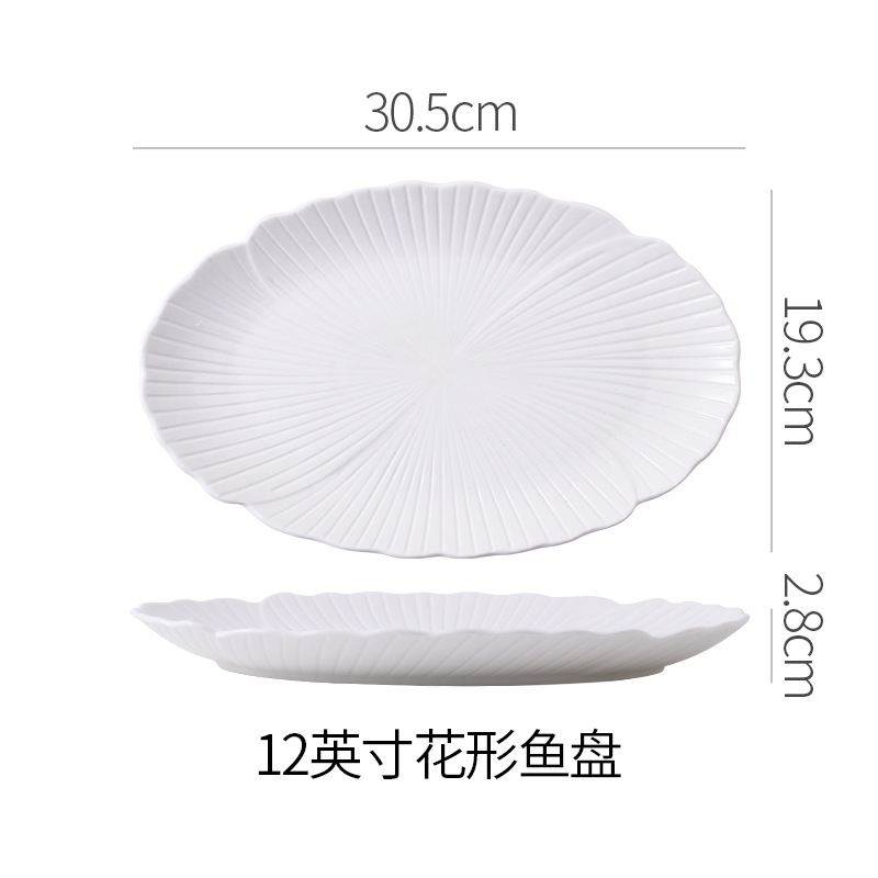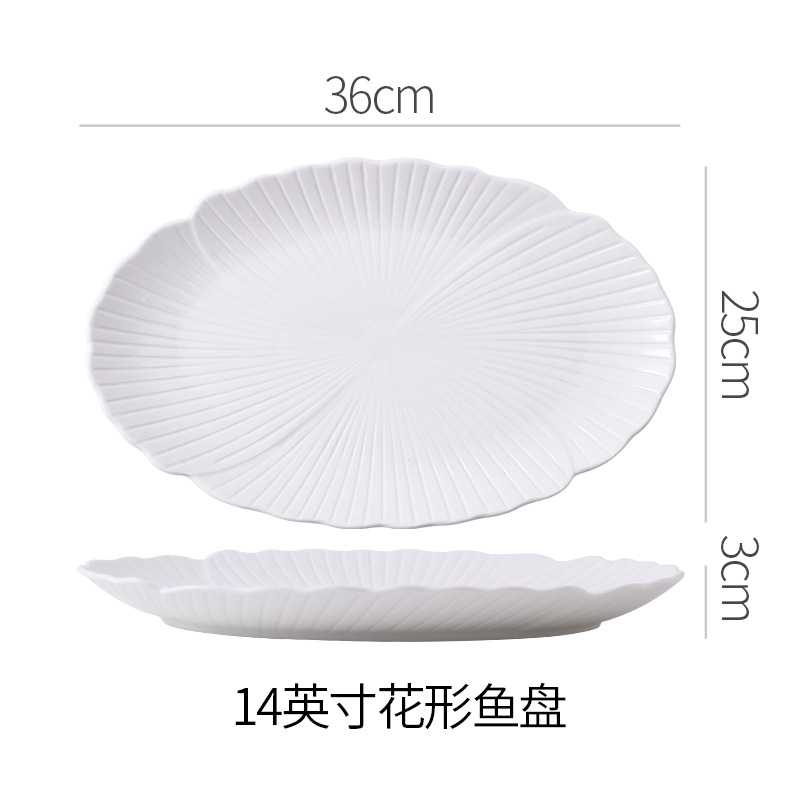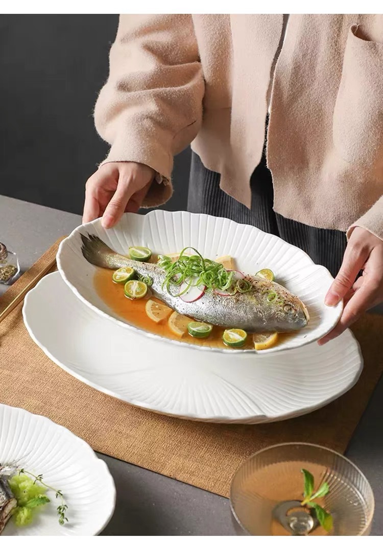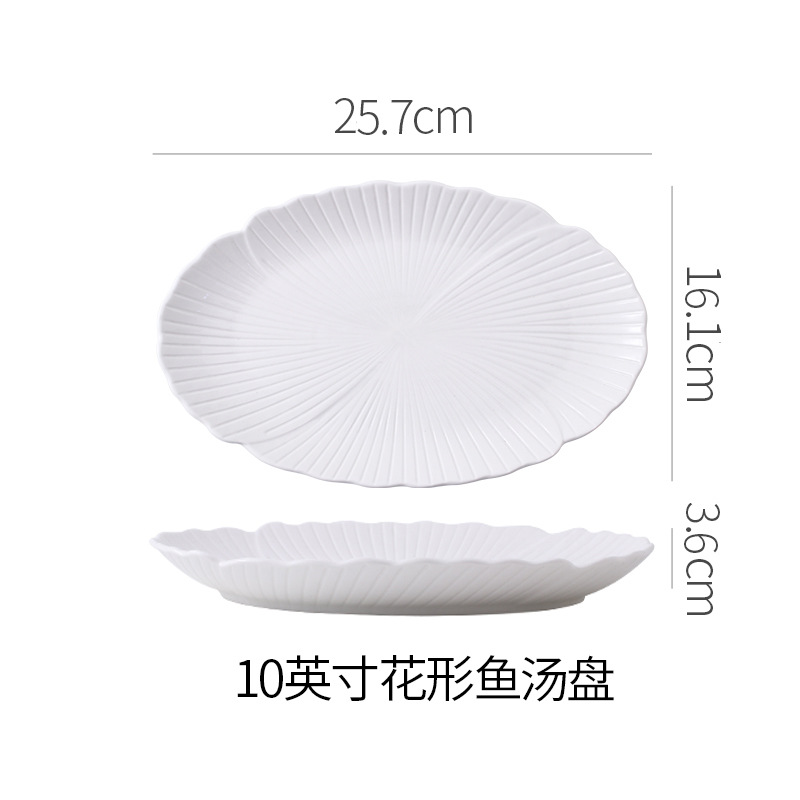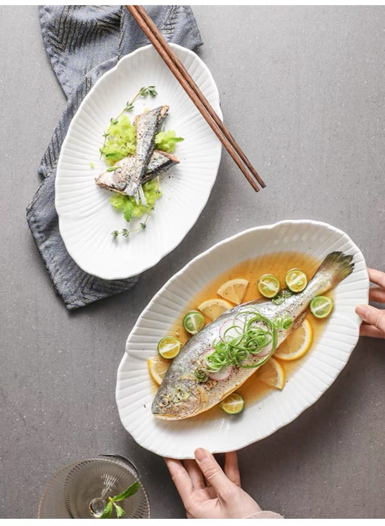 순백색 세라믹 생선찜 접시, 가정용 특별 수프 접시, 야채 접시, 타원형 접시, 심플한 줄무늬, 고급 호텔 식기스토어 가기