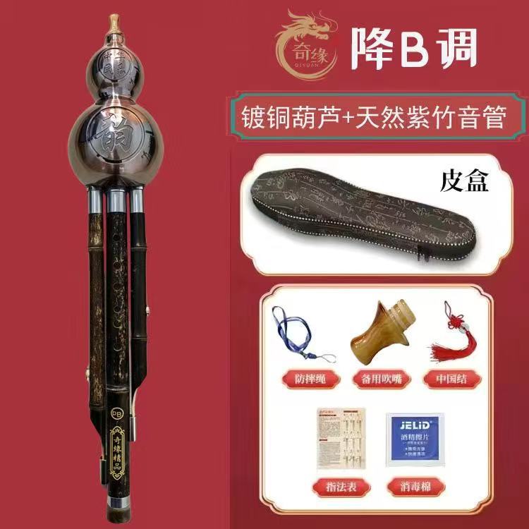 • 천연 보라색 대나무 사운드 튜브 구리 도금 B 플랫 Hulusi + 가죽 상자 + 선물