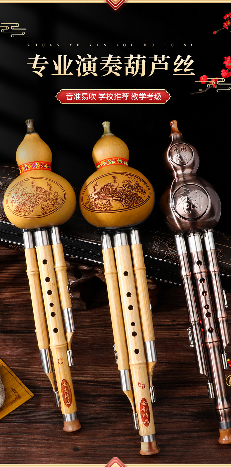 Qiyuan 악기 골드 실크 대나무 조롱박 초보자 C 조정 B 톤 성인 어린이 및 학생을위한 전문 성능