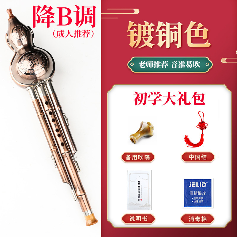• 천연 대나무 사운드 튜브 구리 도금 B 플랫 Hulusi + 가죽 상자 + 책 + 선물