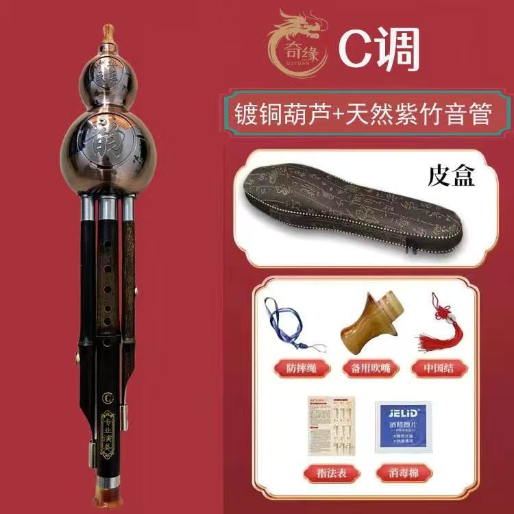 • 천연 보라색 대나무 사운드 튜브 구리 도금 C 키 Hulusi + 가죽 상자 + 선물
