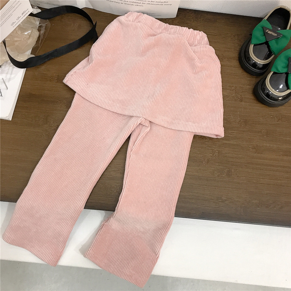 한국 아동복 소녀 귀여운 고양이 프린트 티셔츠 컬롯 플레어 바지 아기 소녀의 귀여운 플레어 바지 세트 대외 무역