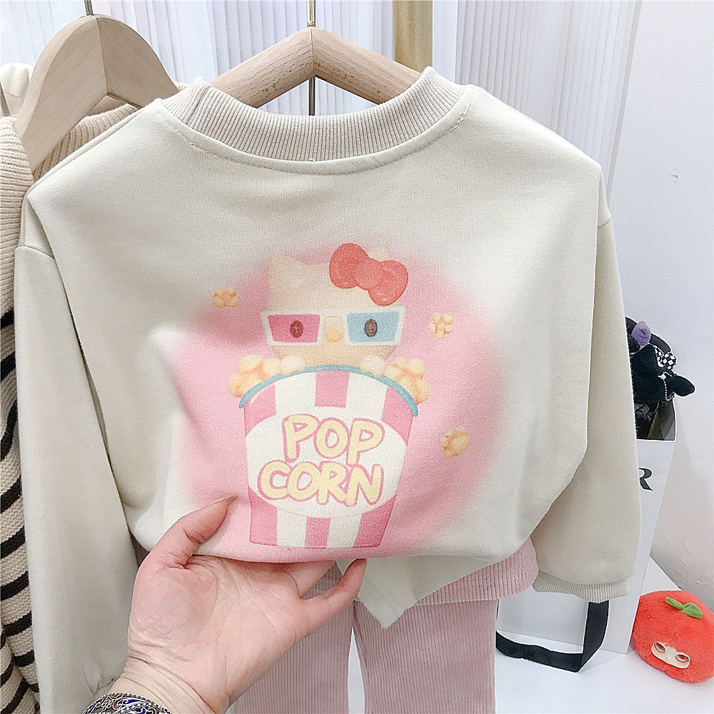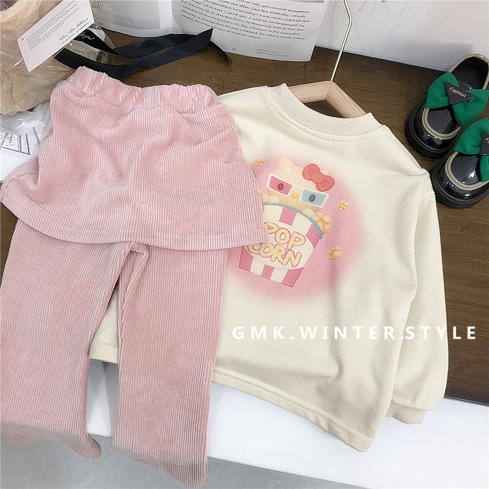한국 아동복 소녀 귀여운 고양이 프린트 티셔츠 컬롯 플레어 바지 아기 소녀의 귀여운 플레어 바지 세트 대외 무역스토어 가기