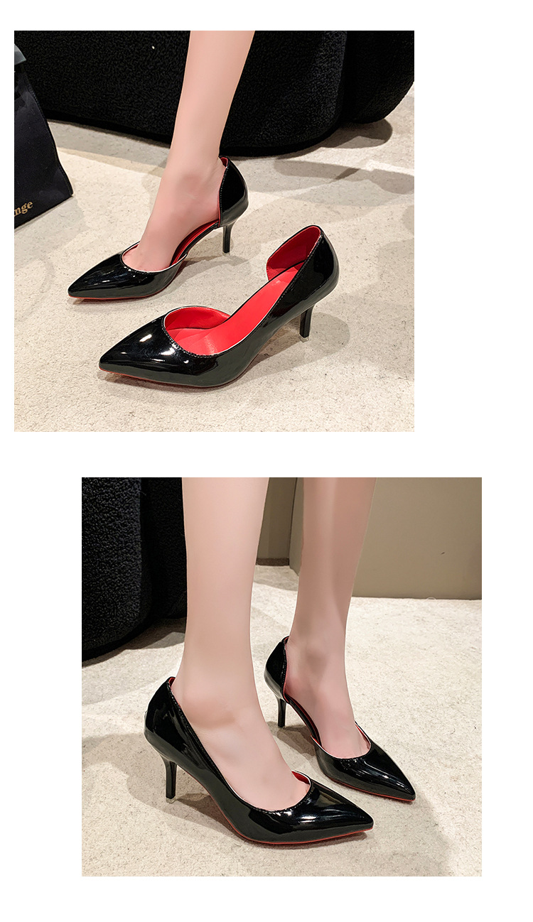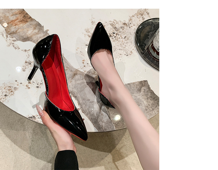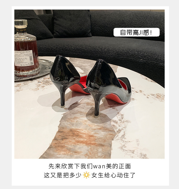 • 블랙 [업그레이드 된 빨간색 하단 스틸레토 힐 7cm]]