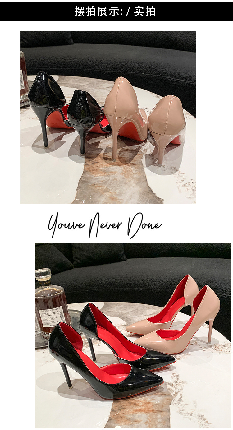 34-44 플러스 사이즈 사이드 빈 빨간색 하단 하이힐 여성 41-42 침대 섹시한 스틸레토 힐 우아한 뾰족한 발가락 가짜 여성 신발 43스토어 가기