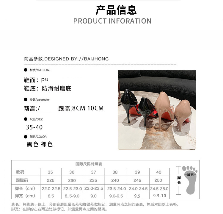34-44 플러스 사이즈 사이드 빈 빨간색 하단 하이힐 여성 41-42 침대 섹시한 스틸레토 힐 우아한 뾰족한 발가락 가짜 여성 신발 43
