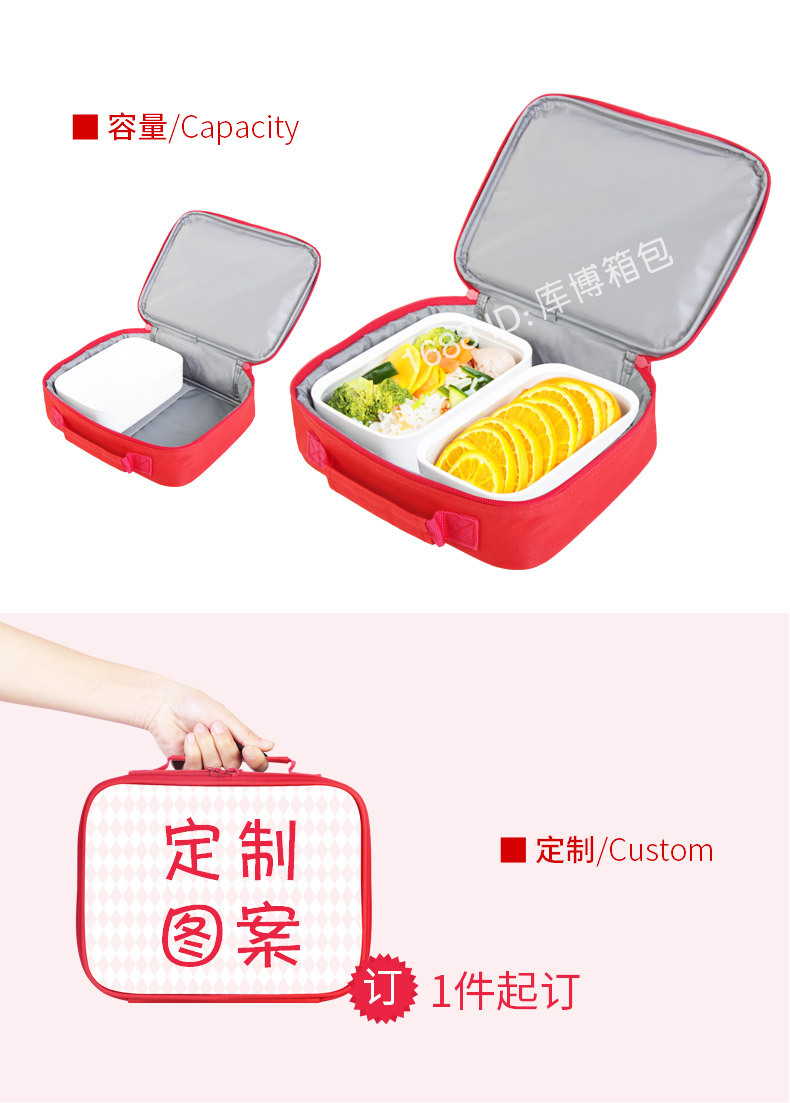 新款彩色横版拉链手提餐包,采用高质量的600D涤纶、加厚的中间夹层和食品级的PEVA内衬,可以保持食物热/冷数小时,大容量、优质结实耐用的松紧带,更好的存放餐具分隔更方便。适用于上班族,学生和户外运动,短旅旅行的理想午餐袋。可以轻松地用湿布将内衬擦拭干净。