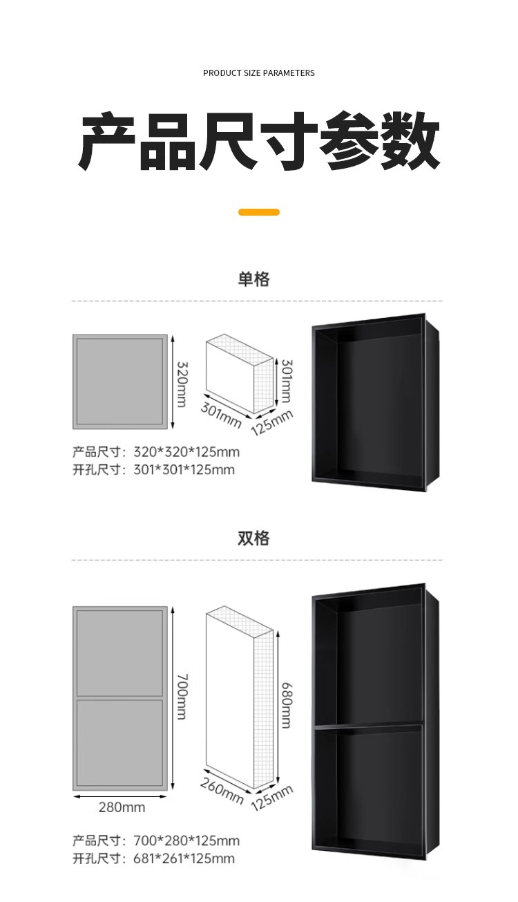 • 304 스테인레스 벽감 [빛이 있는 매트 블랙] 가로 70CM