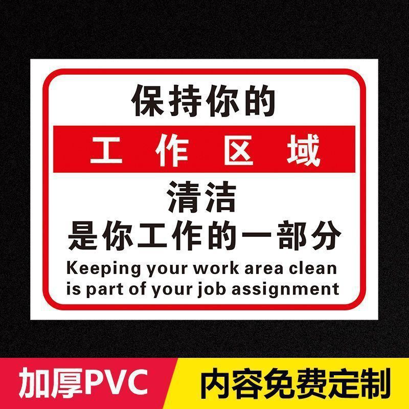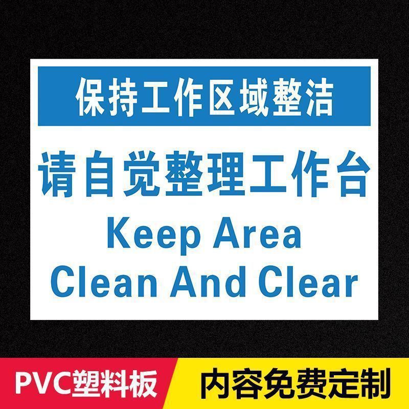 작업 영역을 깨끗하게 유지하는 것이 작업의 일부입니다. 따뜻한 표지판 창고 작업장 표지판