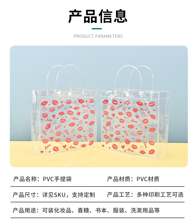 PVC 투명 핸드백 기념품 선물 가방 맞춤형 손으로 들고 다니는 웨딩 사탕 비닐 봉투 스냅 패키지 가방 신속하게스토어 가기