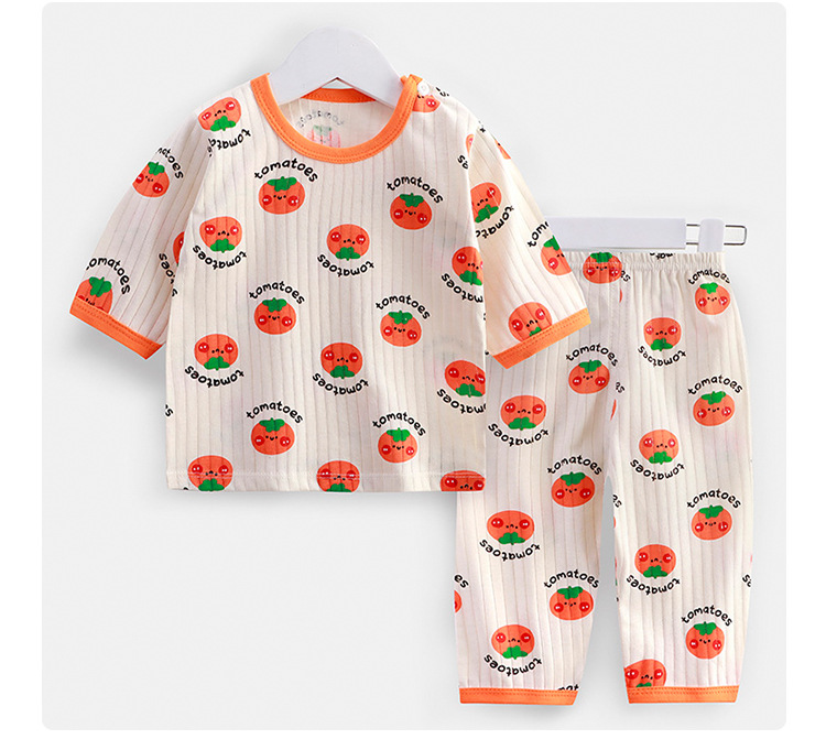 2023 새로운 어린이 에어컨 의류 면화 홈 세트 여자 속옷 세트 아기 잠옷 아동복 도매