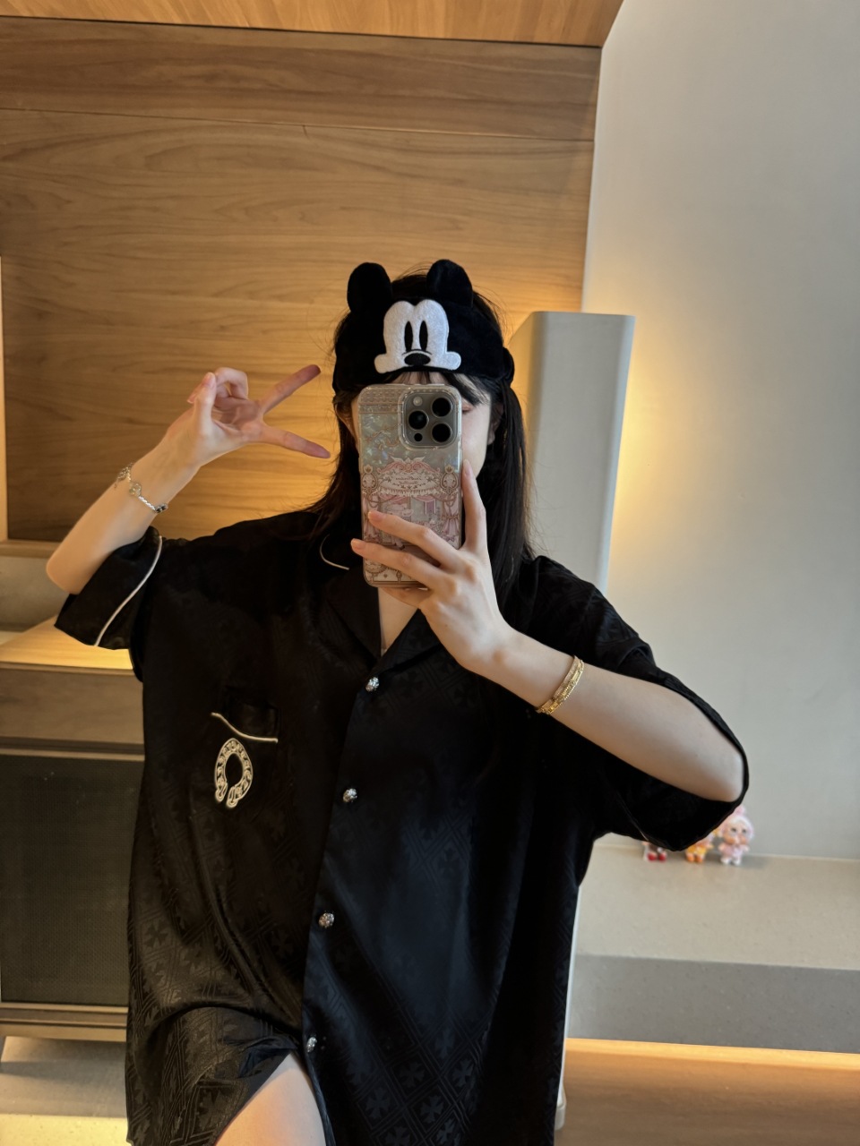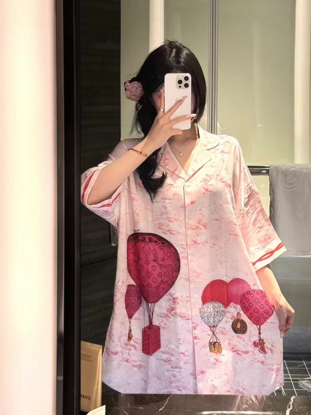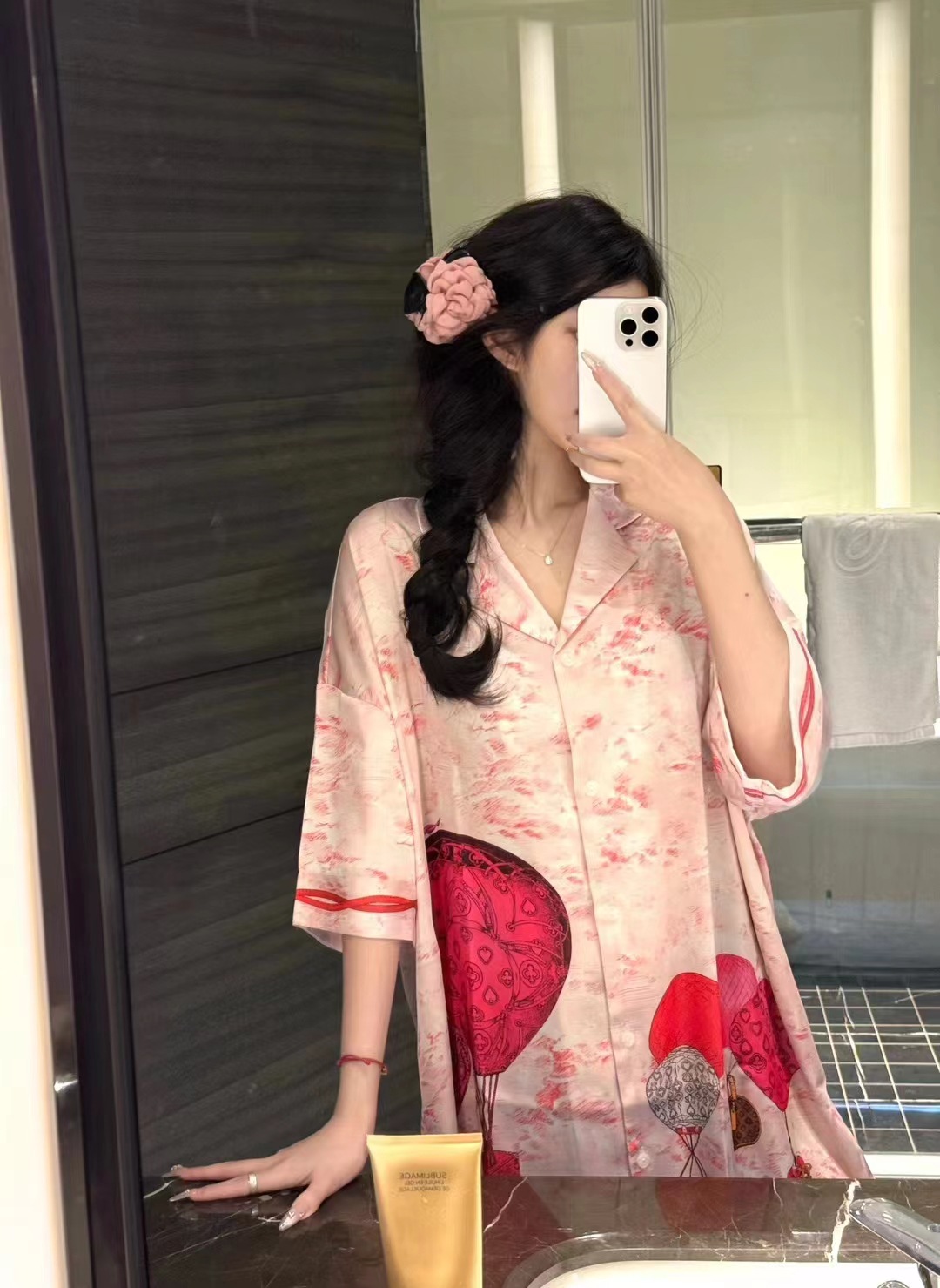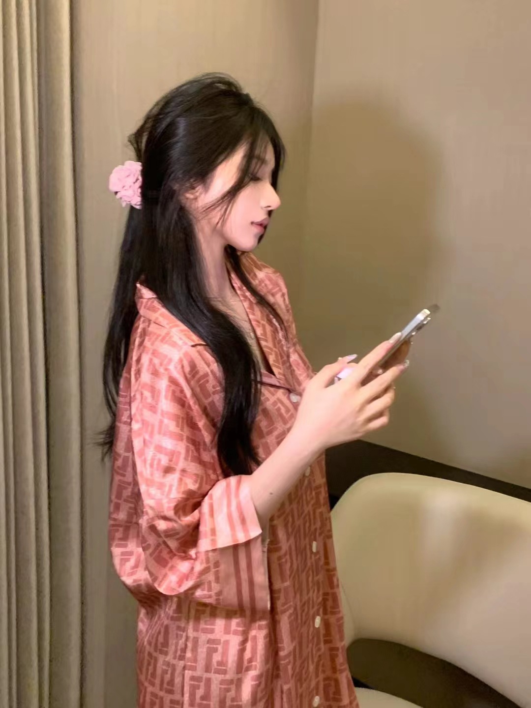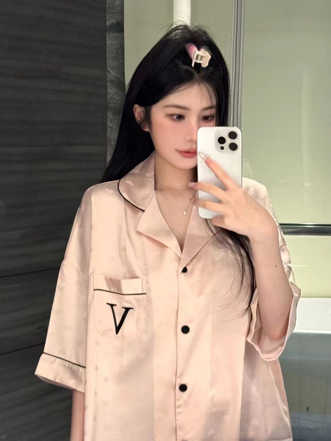 한국식 심플한 스타일 셔츠 원피스 잠옷 여성 실크 긴소매 봄과 여름 가정복 세트 도매스토어 가기