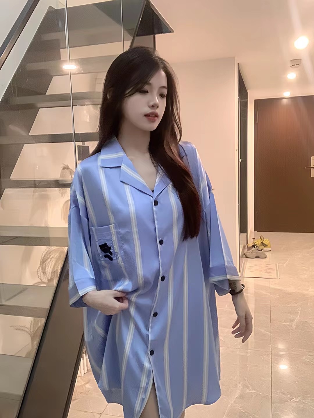 • 블루 스트라이프 셔츠 원피스
