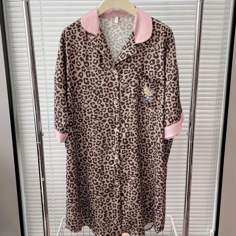 • 레오파드 프린트 캣 핑크 셔츠 드레스