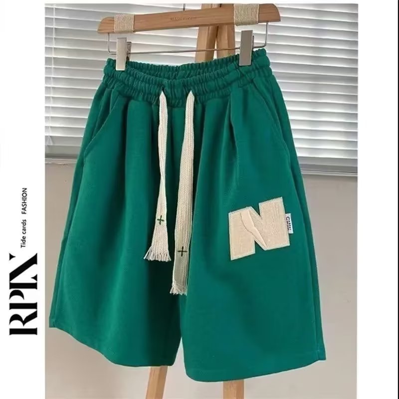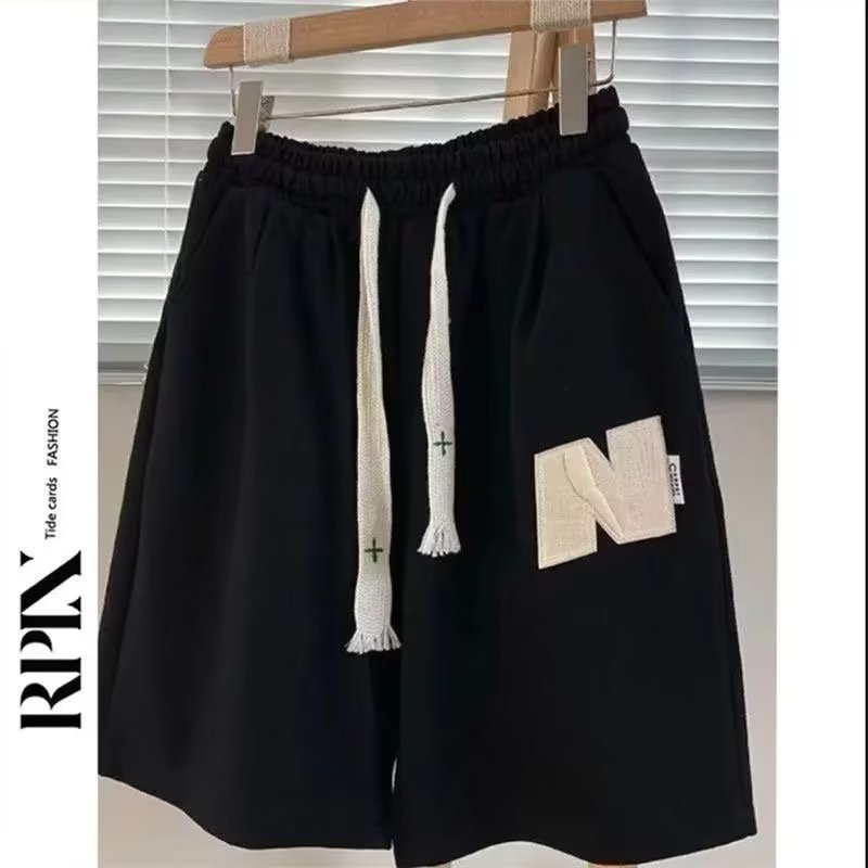 미국식 자수 캐주얼 반바지 남성 여름 패션 브랜드, 와플 바지 하이 스트리트 느슨한 스포츠 반바지