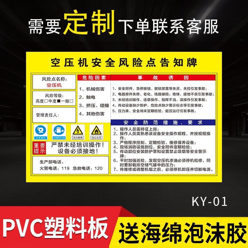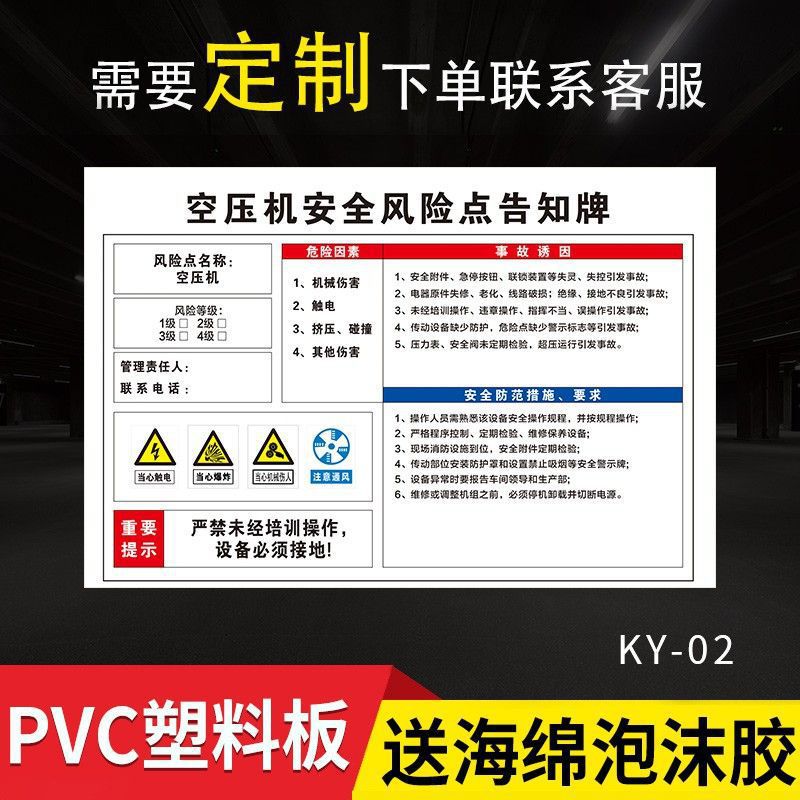 • 50*60 플라스틱 판 공기 압축기 위험 지점 * 표준