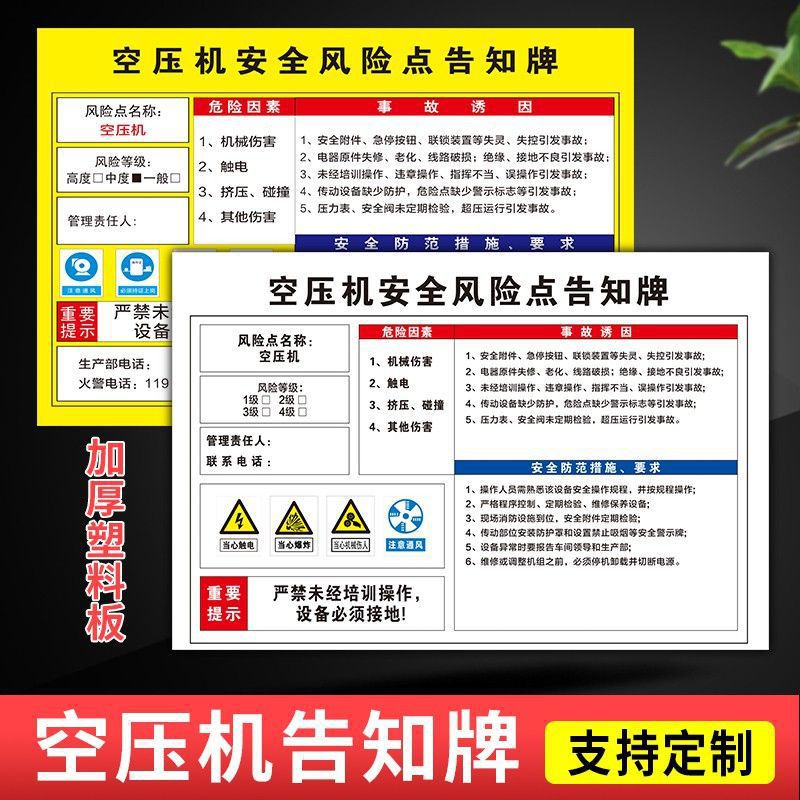 작업장 위험 지점 통지 카드 포스트 분배 룸 공기 압축기 보일러 룸 창고 지게차 기계적 손상스토어 가기