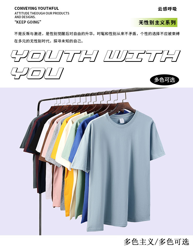 새로운 여름 200g 순수 코튼 티셔츠 루즈 라운드 넥 남성용 반팔 탑 스웨트 캐주얼 광고 셔츠스토어 가기