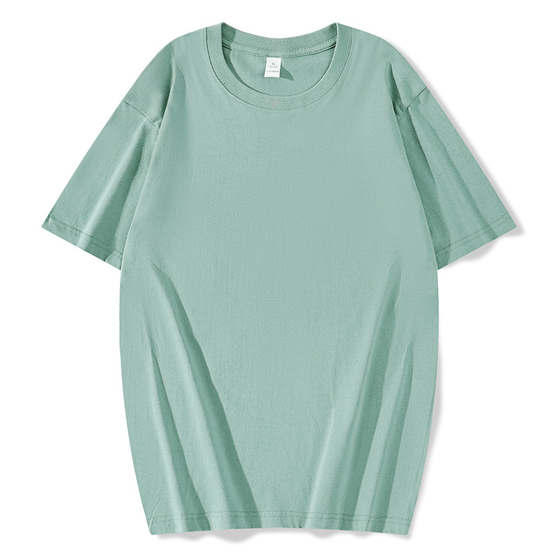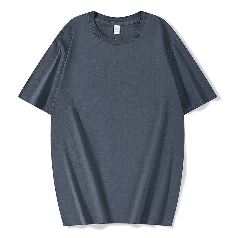 새로운 여름 200g 순수 코튼 티셔츠 루즈 라운드 넥 남성용 반팔 탑 스웨트 캐주얼 광고 셔츠