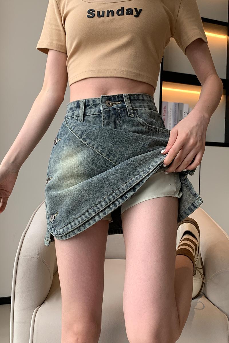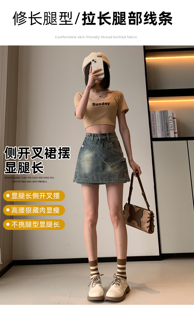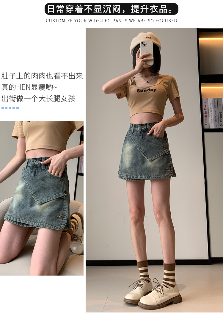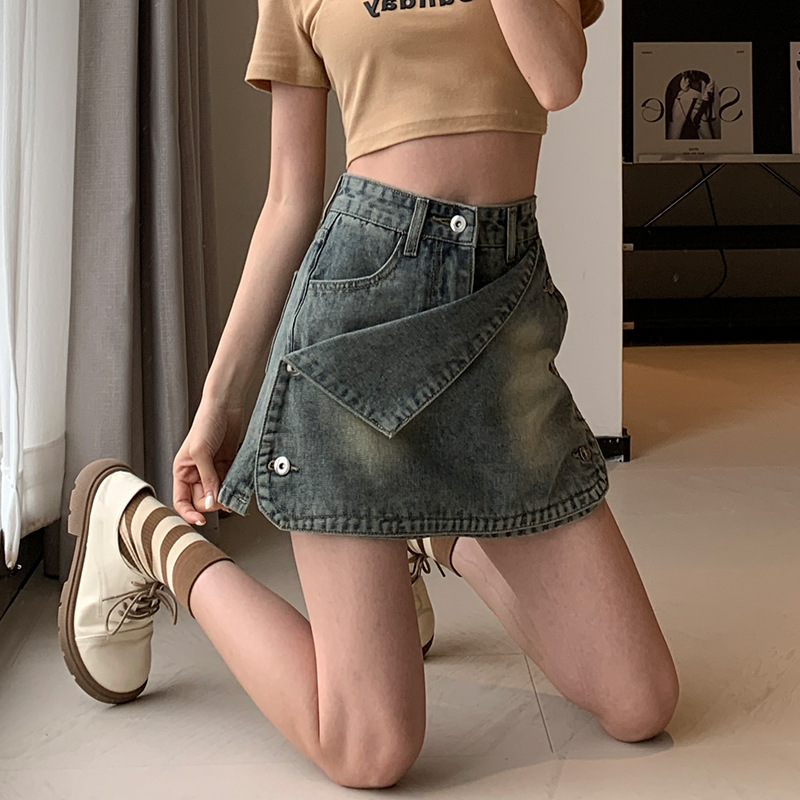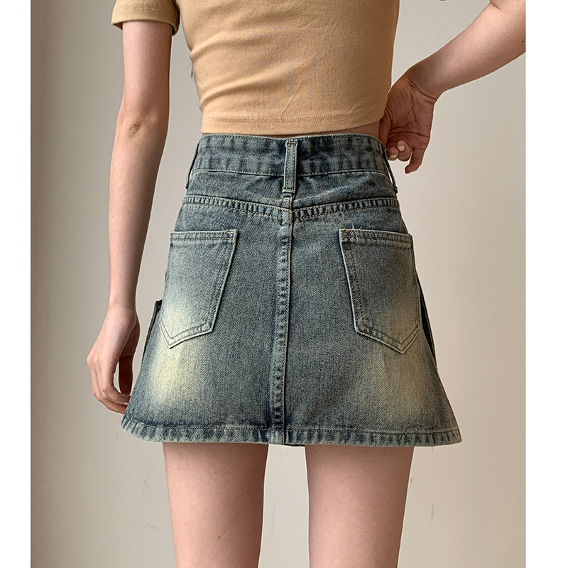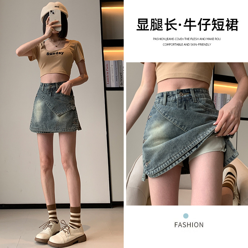 리얼 스팟 2024 플랜지 디자인 센스 틈새 데님 스커트 여성 봄과 여름 높은 허리 슬리밍 스파이스 소녀 올 매치 스커트스토어 가기