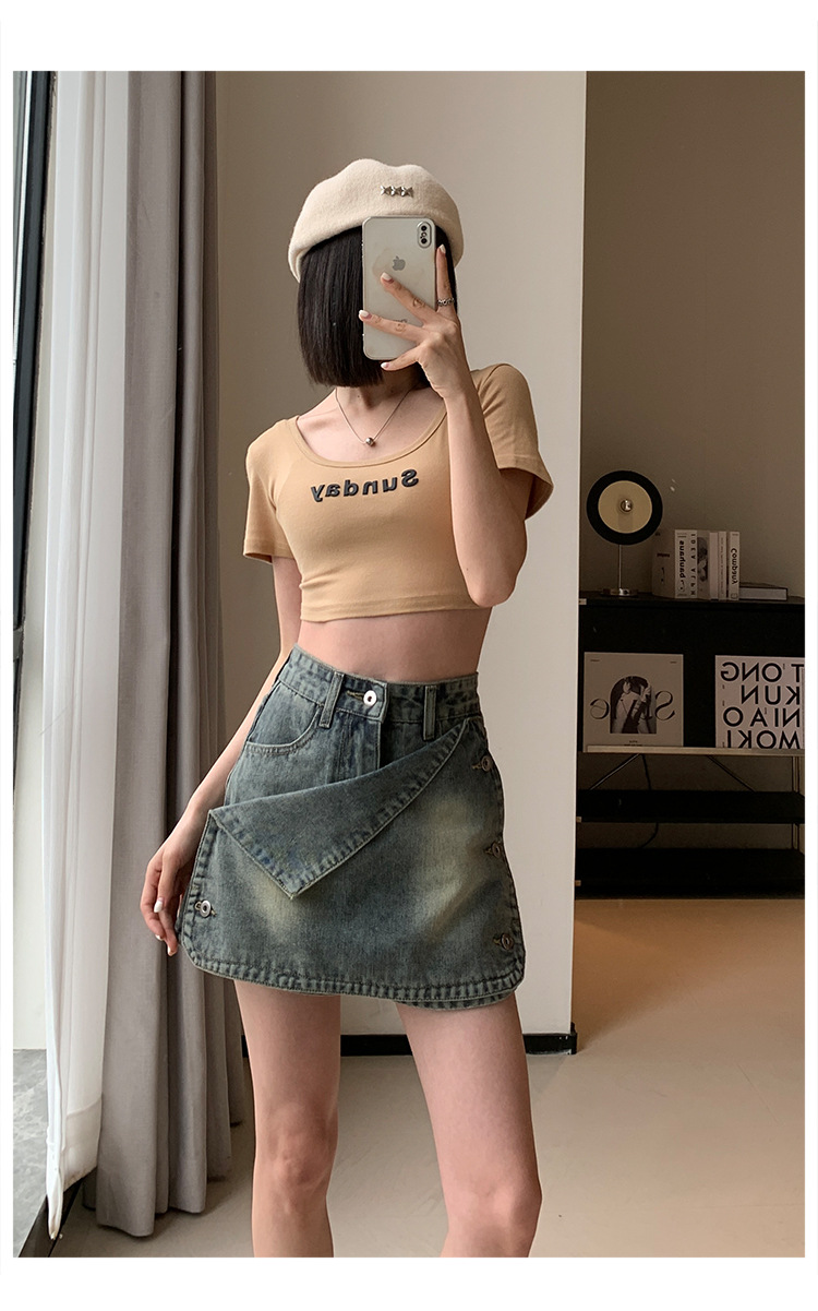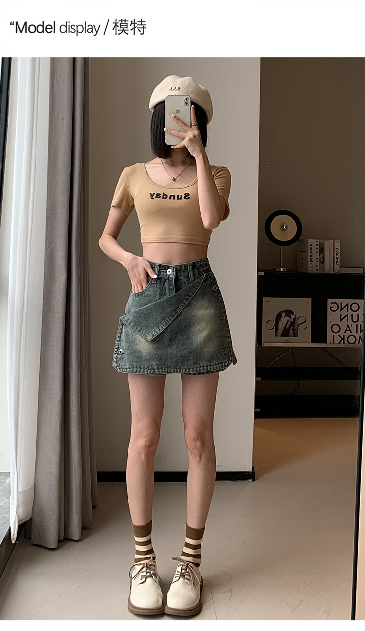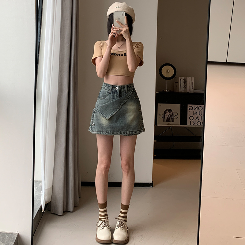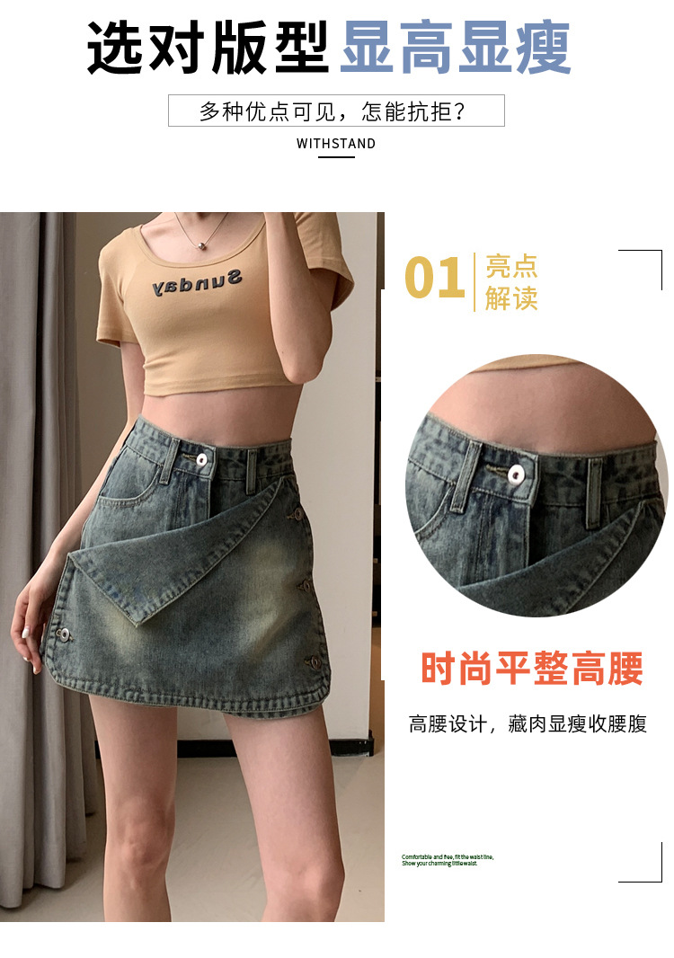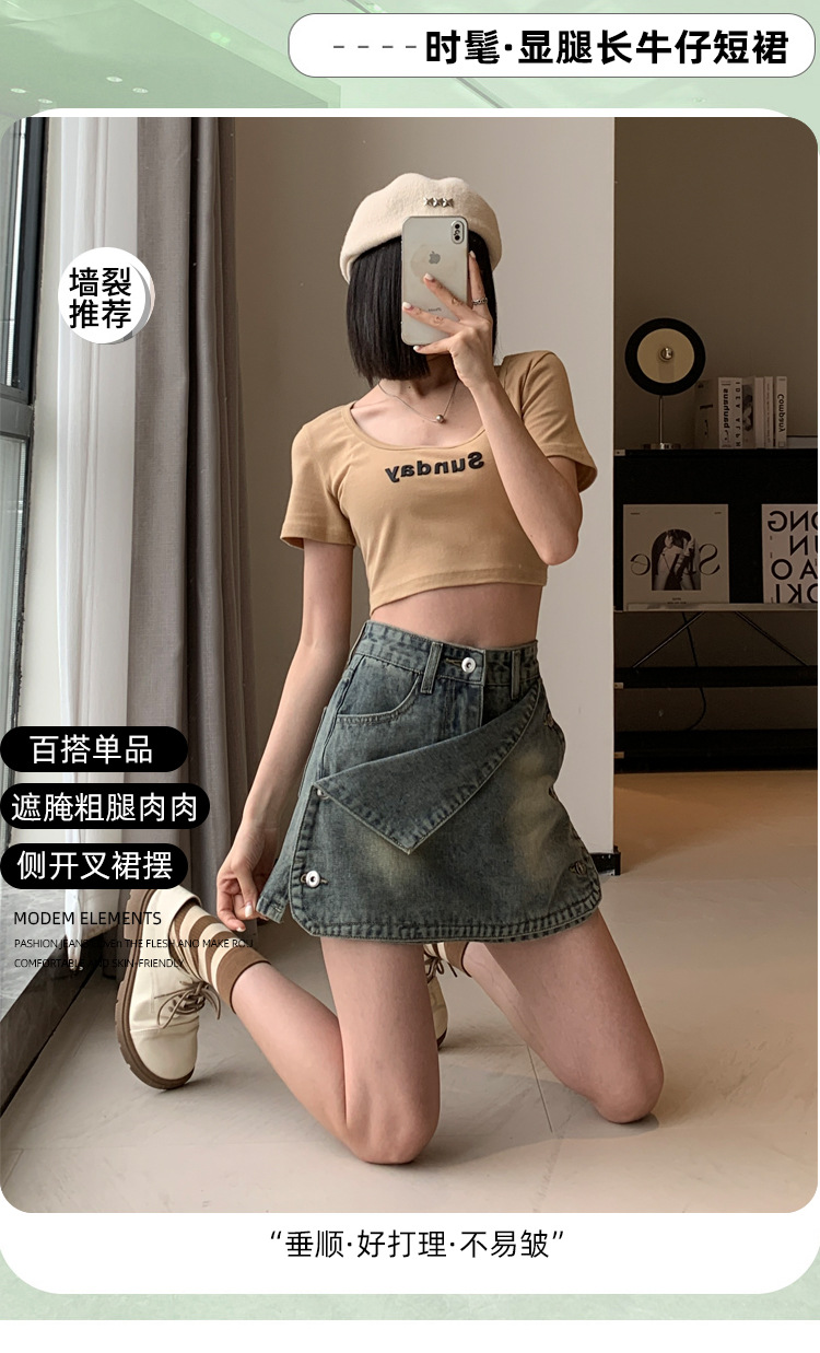 리얼 스팟 2024 플랜지 디자인 센스 틈새 데님 스커트 여성 봄과 여름 높은 허리 슬리밍 스파이스 소녀 올 매치 스커트스토어 가기