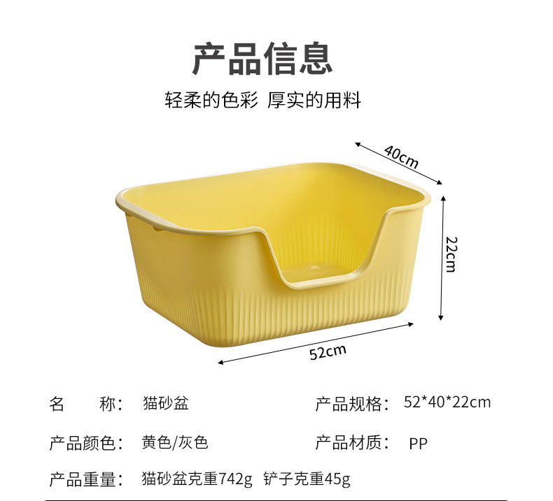 • 크림색 노란색 고양이 배변 상자(52*40*22) 고양이 배변 국자 포함