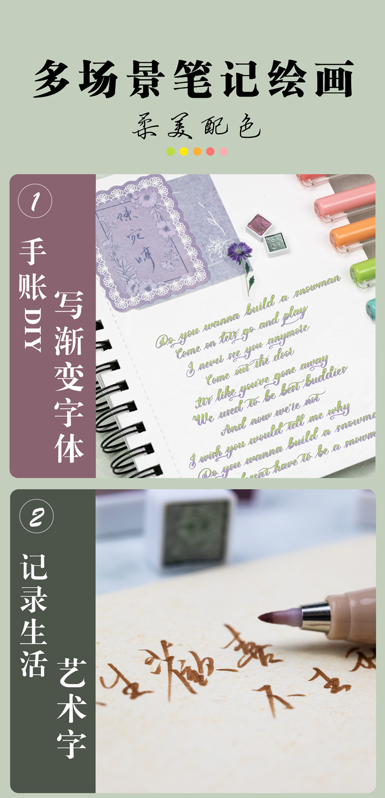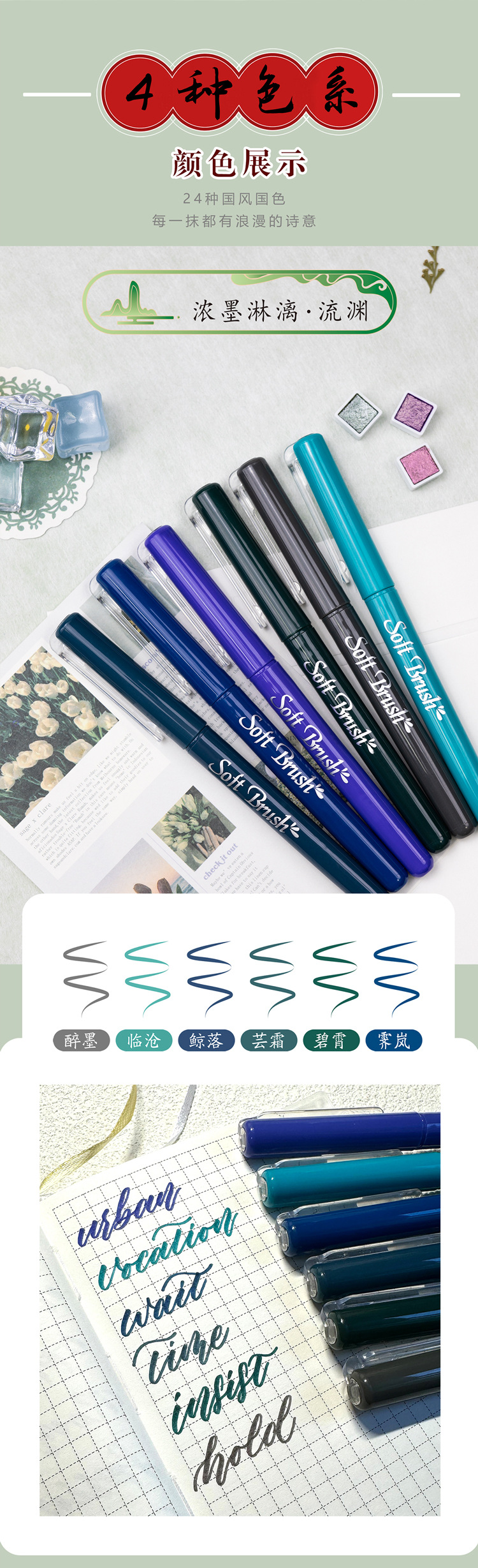 광나 부드러운 그림 펜 컬러 Xiuli 펜 서예 연습 펜 펜 펜 전면 컬러 시리즈 2307 수성 브러시 4 세트