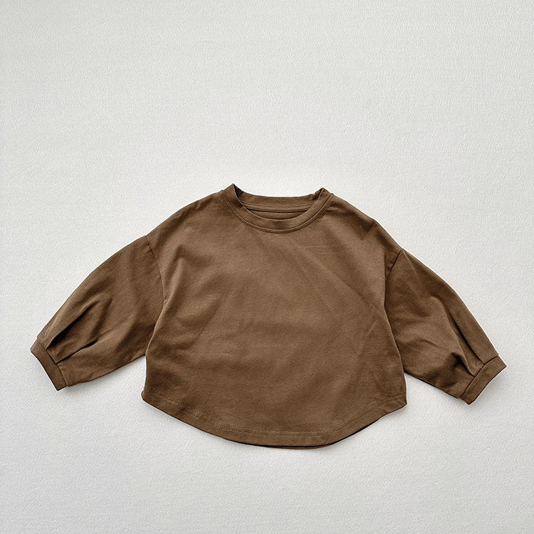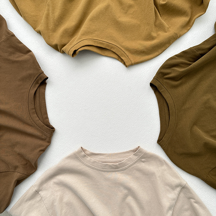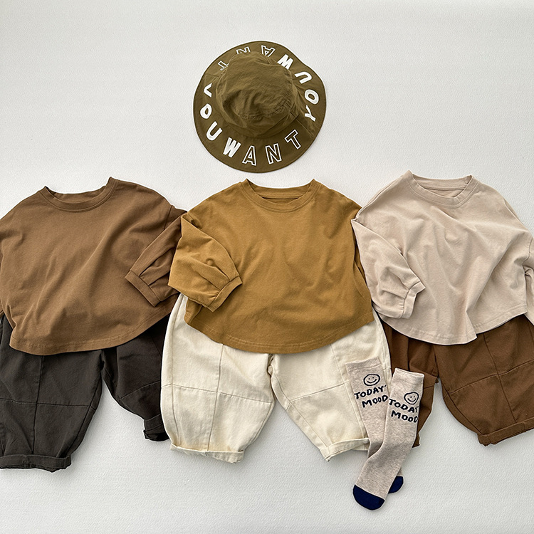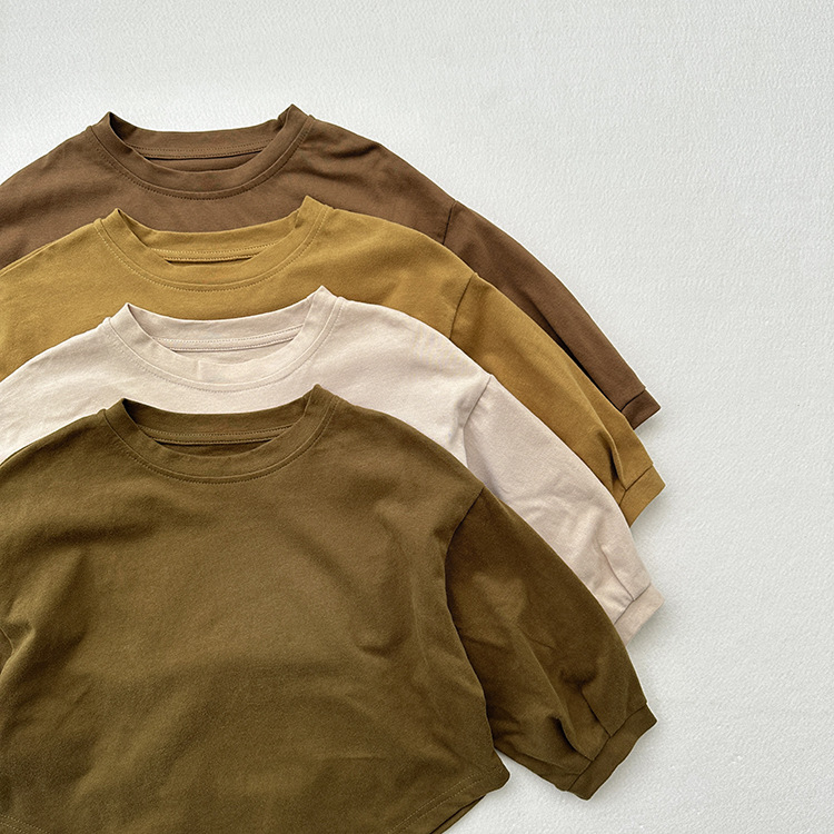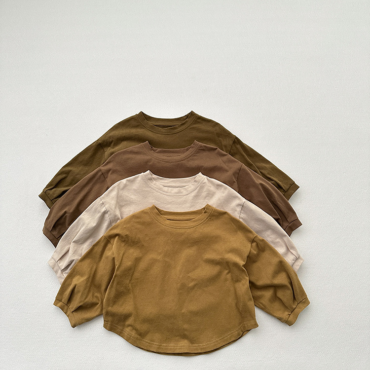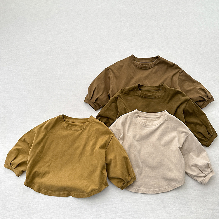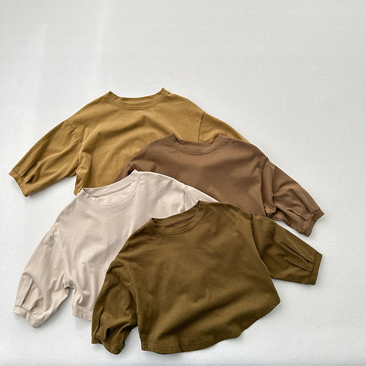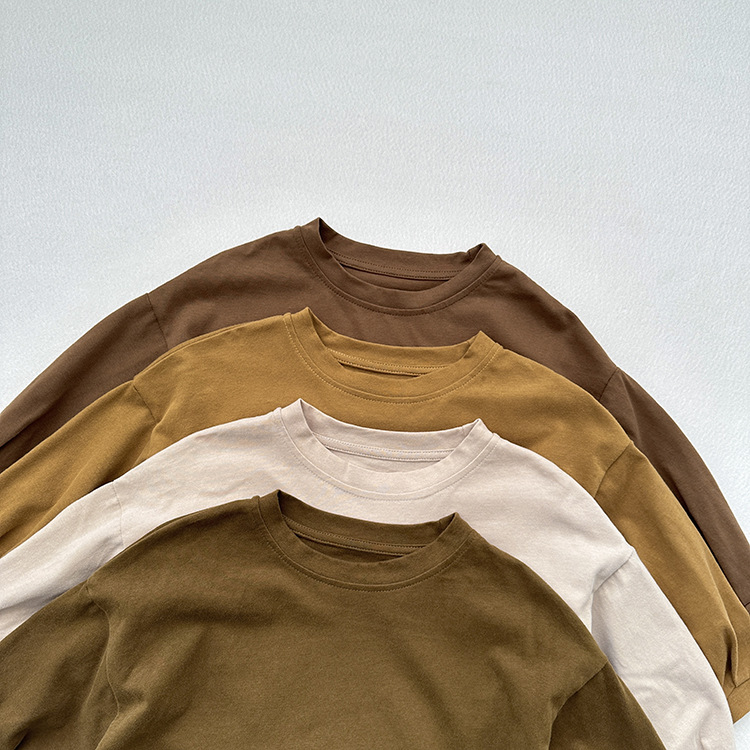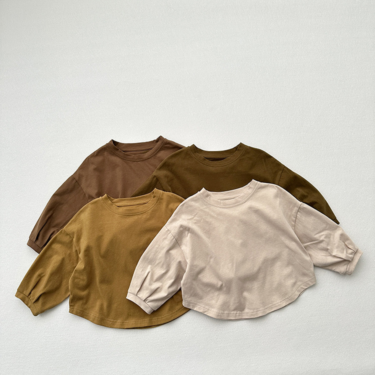 기본 색상 겉옷 상단 ~ 봄과 가을 새로운 아동면 둥근 목 바닥 셔츠 소년 소녀 한국식 긴팔 티셔츠