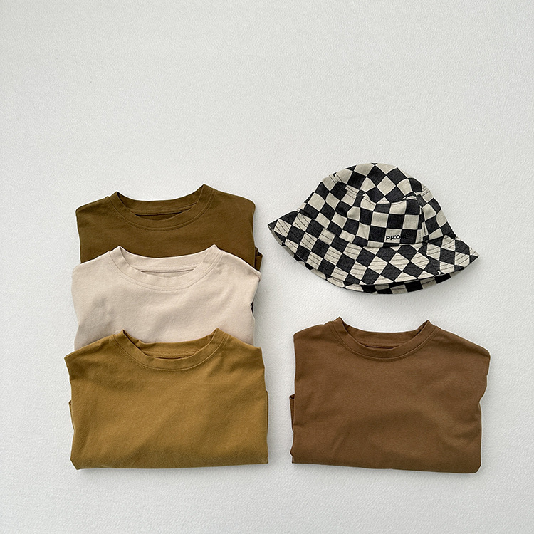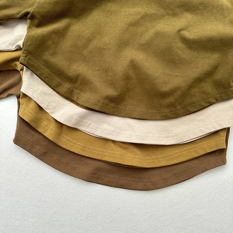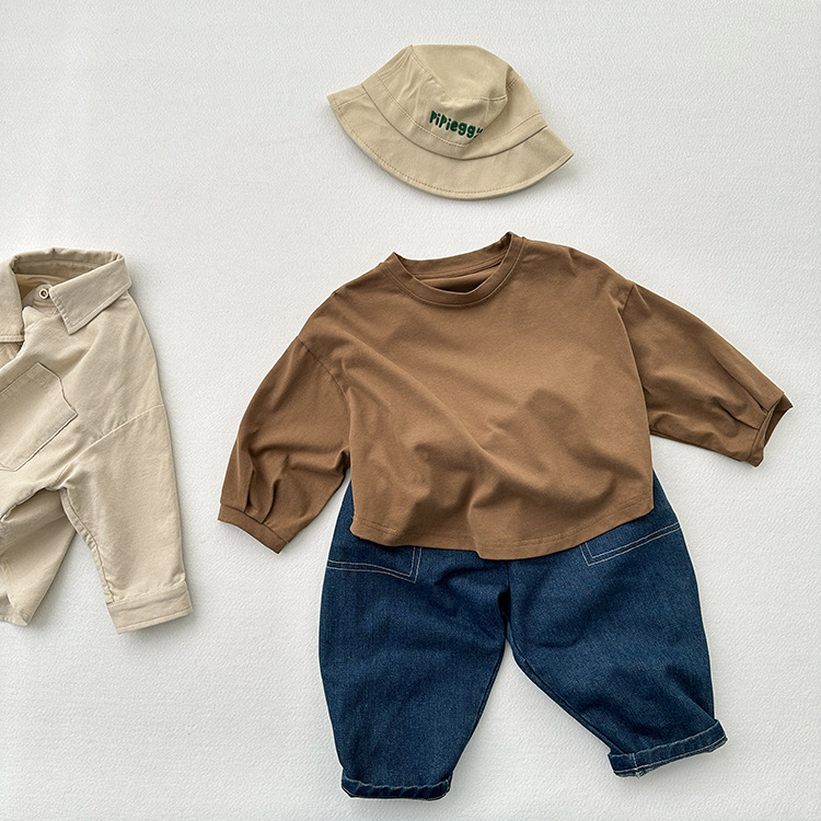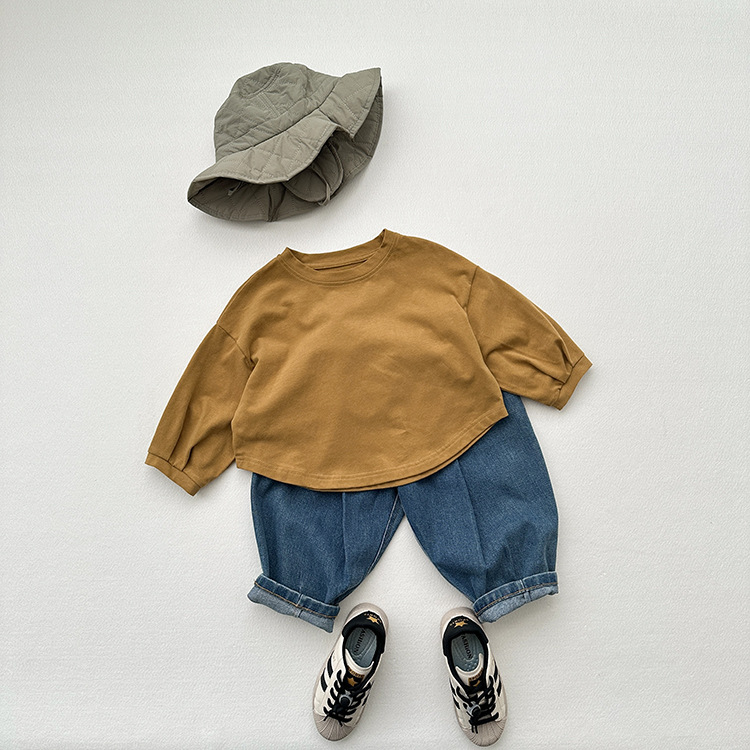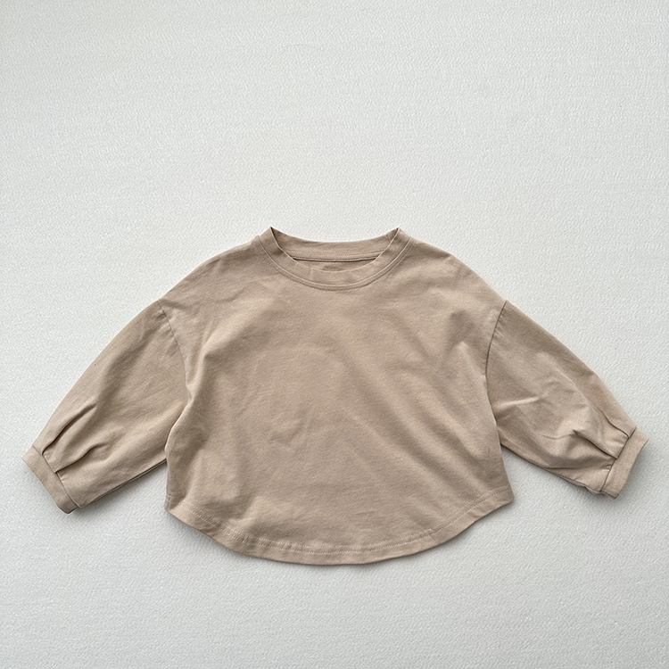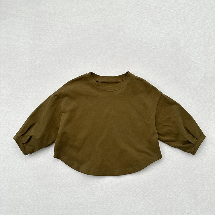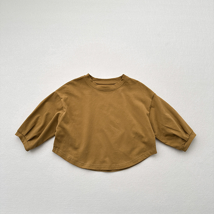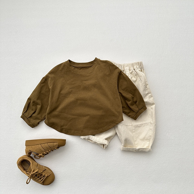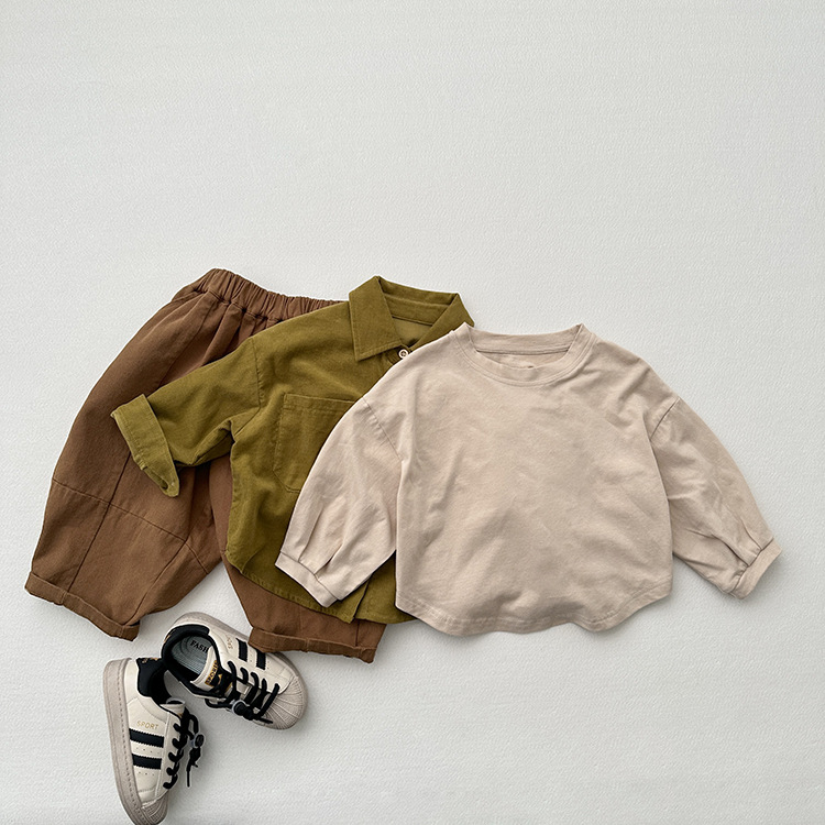 기본 색상 겉옷 상단 ~ 봄과 가을 새로운 아동면 둥근 목 바닥 셔츠 소년 소녀 한국식 긴팔 티셔츠