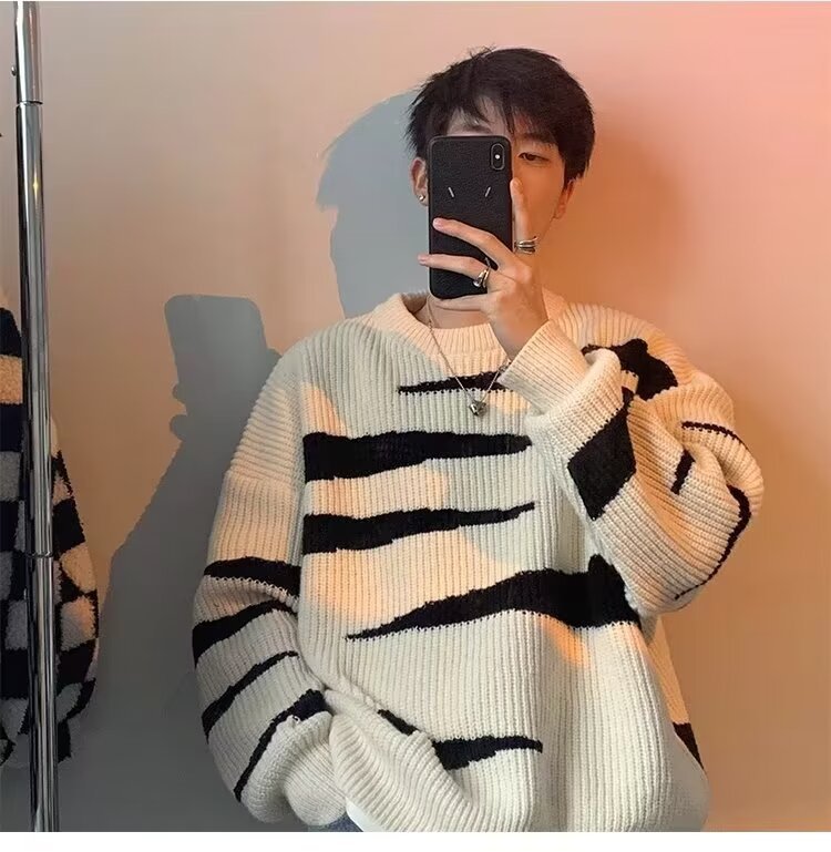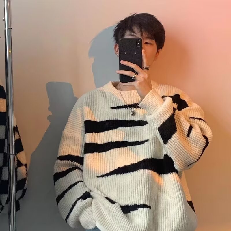 스웨터 남성 가을과 겨울 두꺼운 느슨한 핀 트렌디 라운드 넥 풀오버 올 매치 스웨터 일본식 게으른 스타일 디자인 감각 틈새스토어 가기