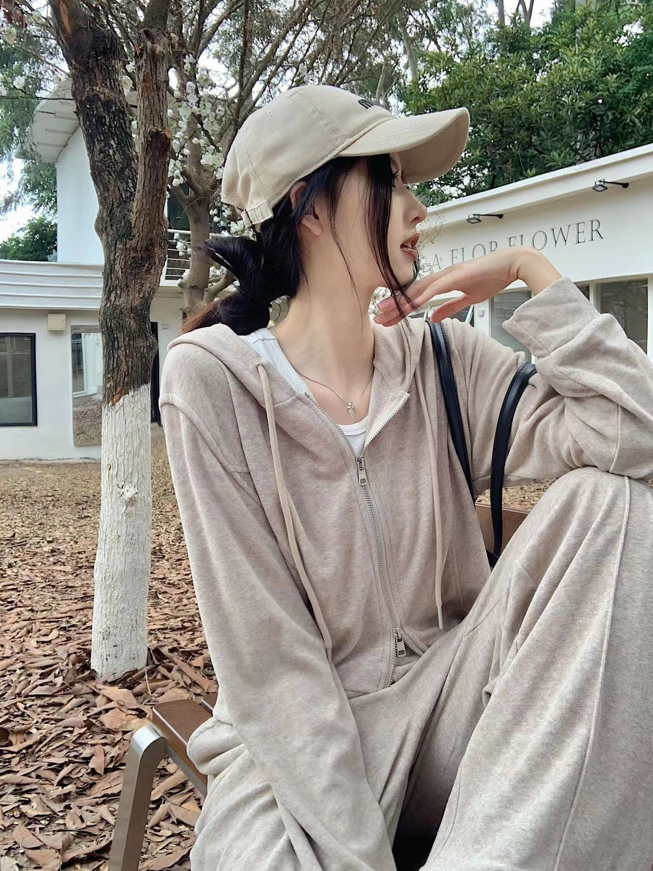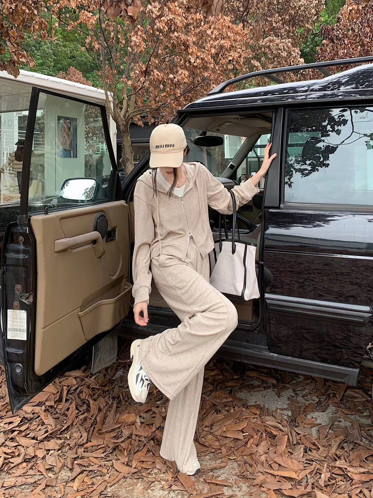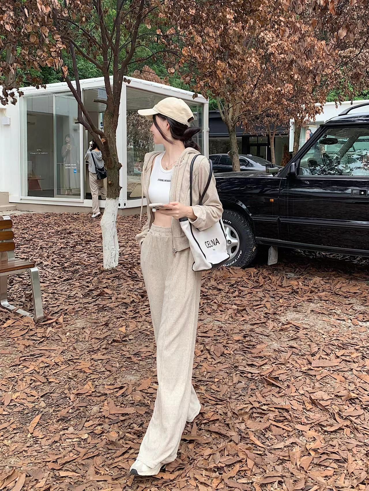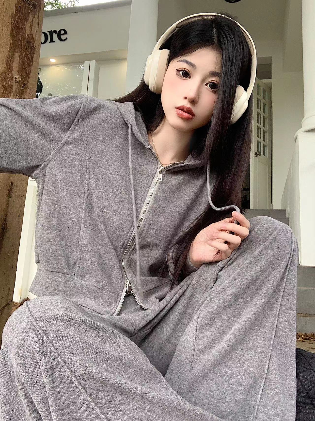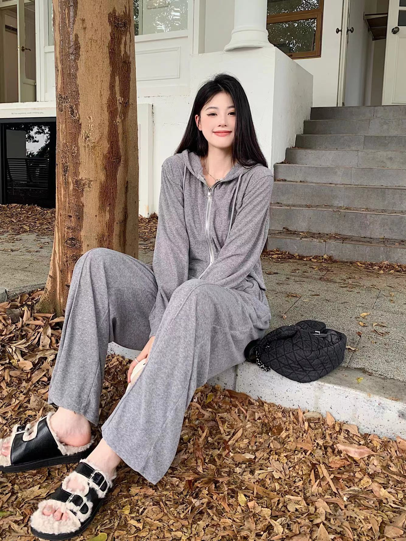 새로운 가을과 겨울 새로운 캐주얼 연령 감소 세트 2024 여성을위한 한국식 스포츠 후드 스웨터 카디건 투피스 세트스토어 가기