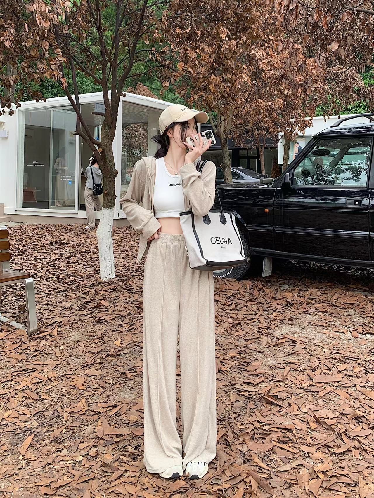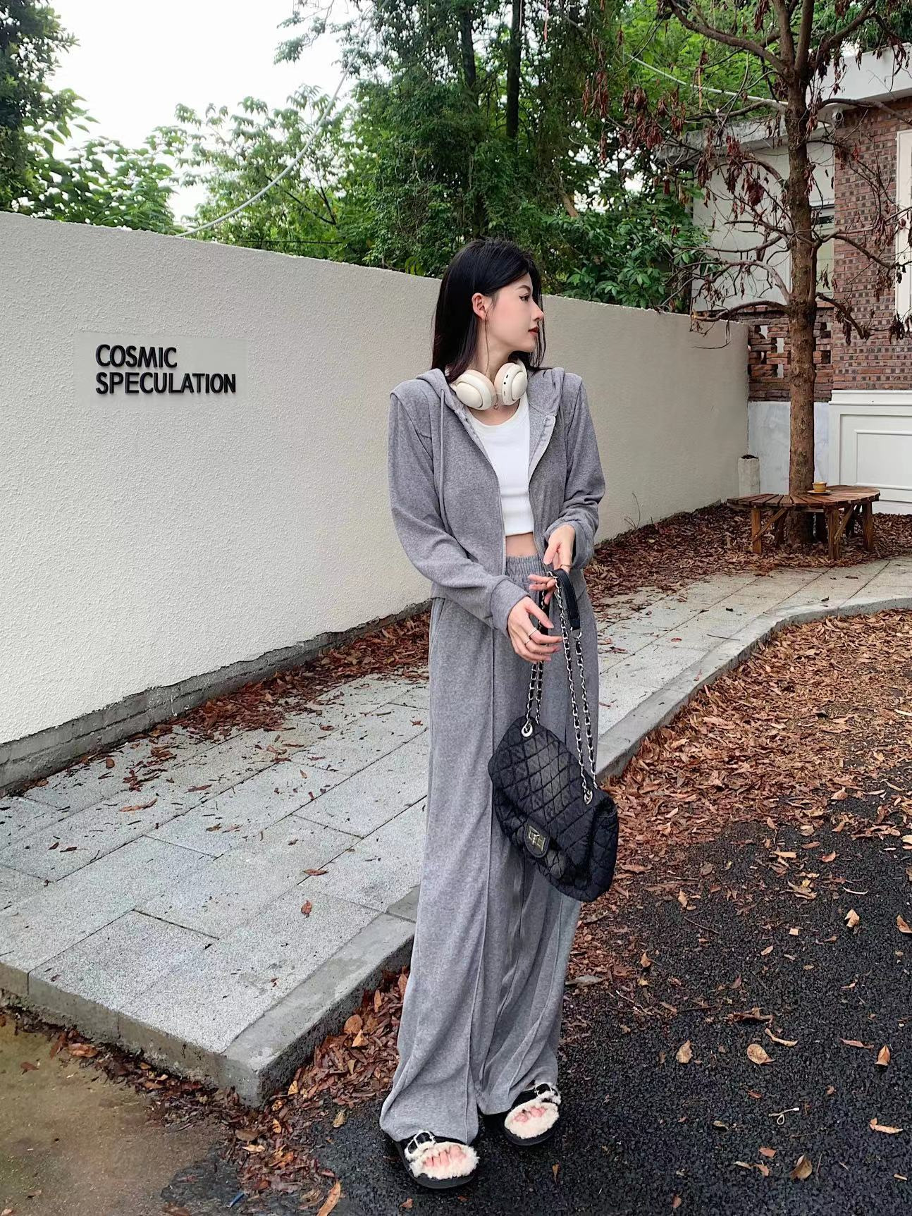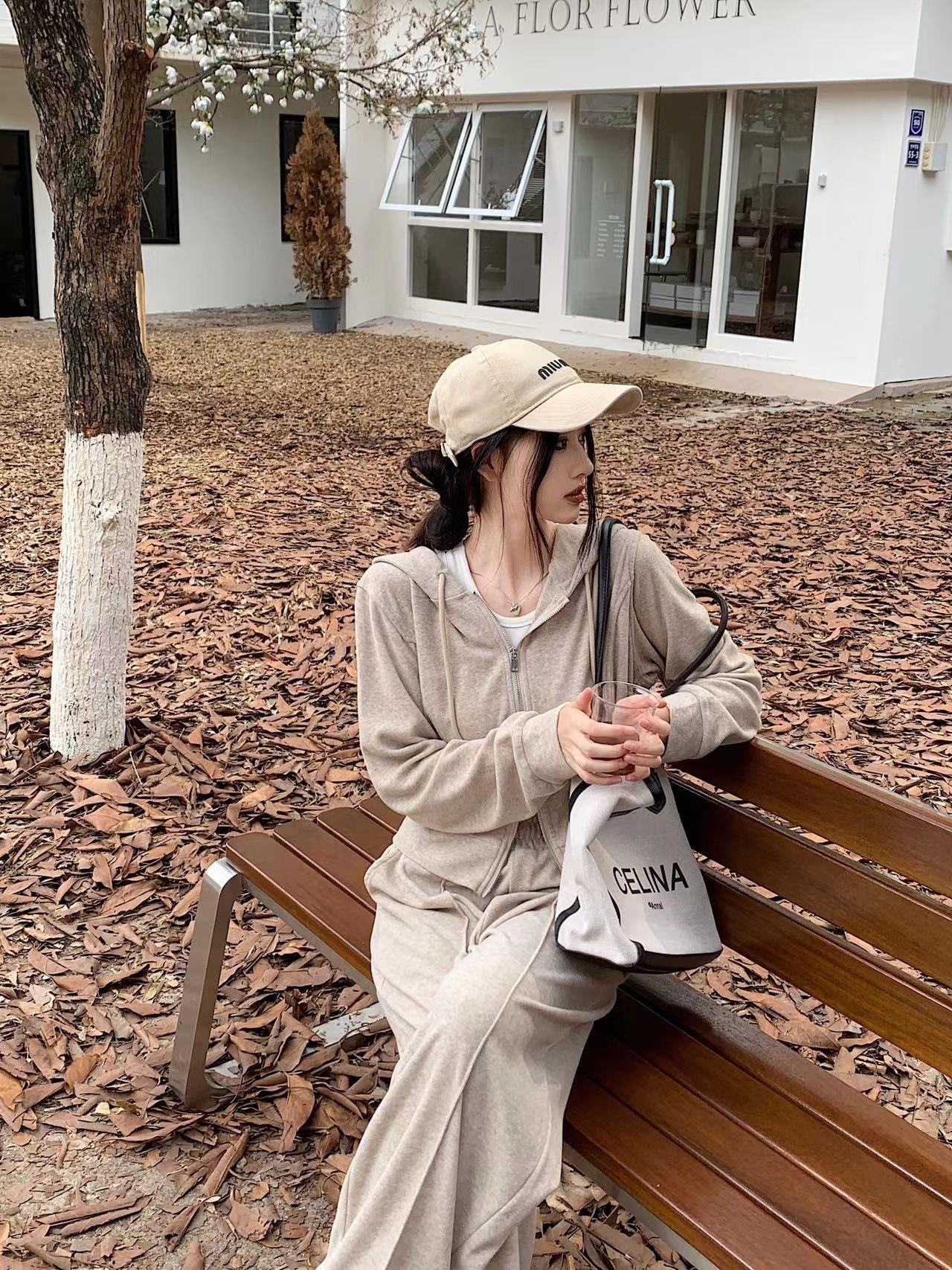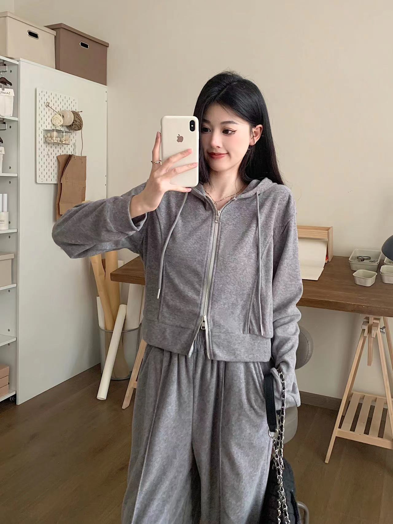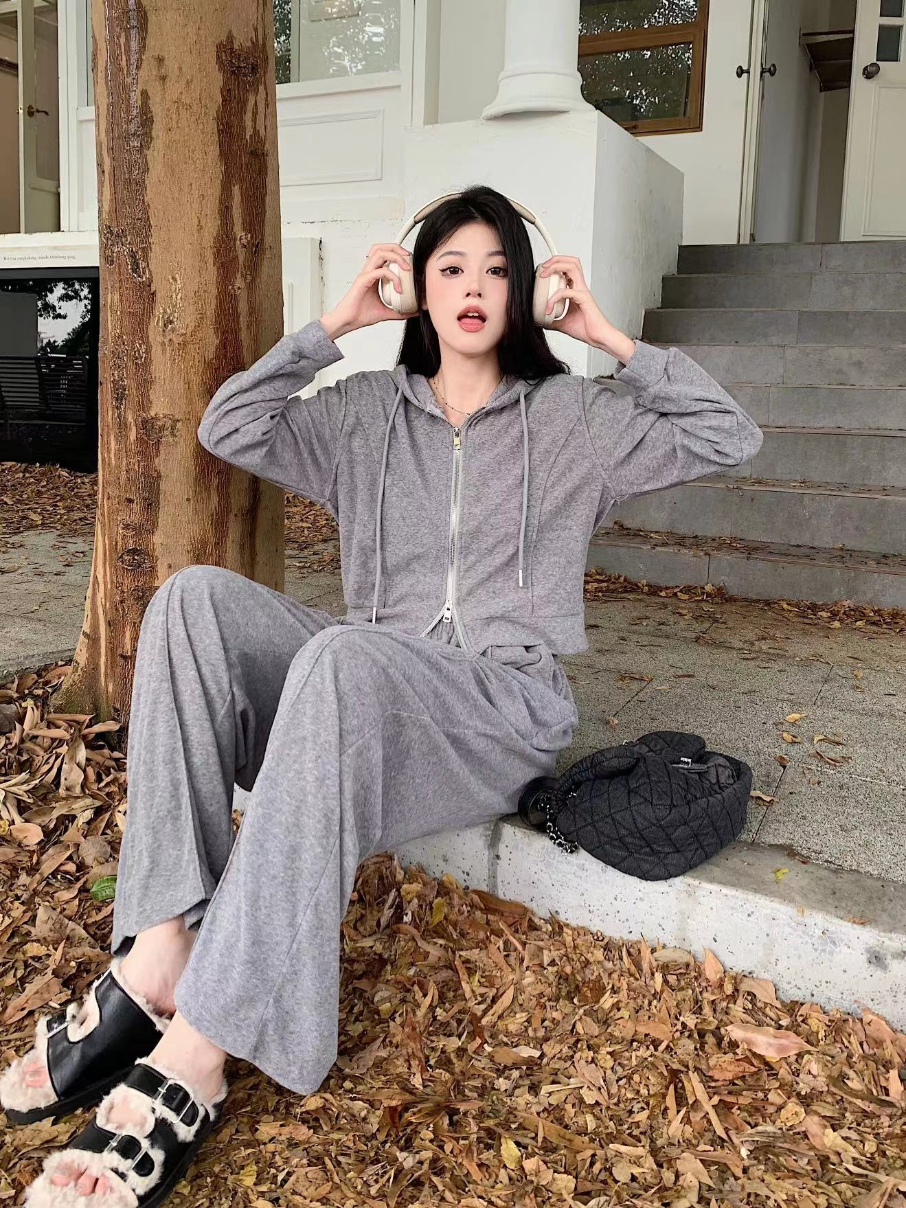새로운 가을과 겨울 새로운 캐주얼 연령 감소 세트 2024 여성을위한 한국식 스포츠 후드 스웨터 카디건 투피스 세트스토어 가기