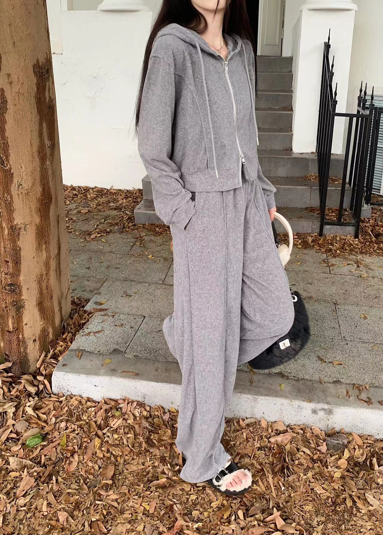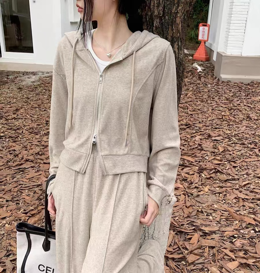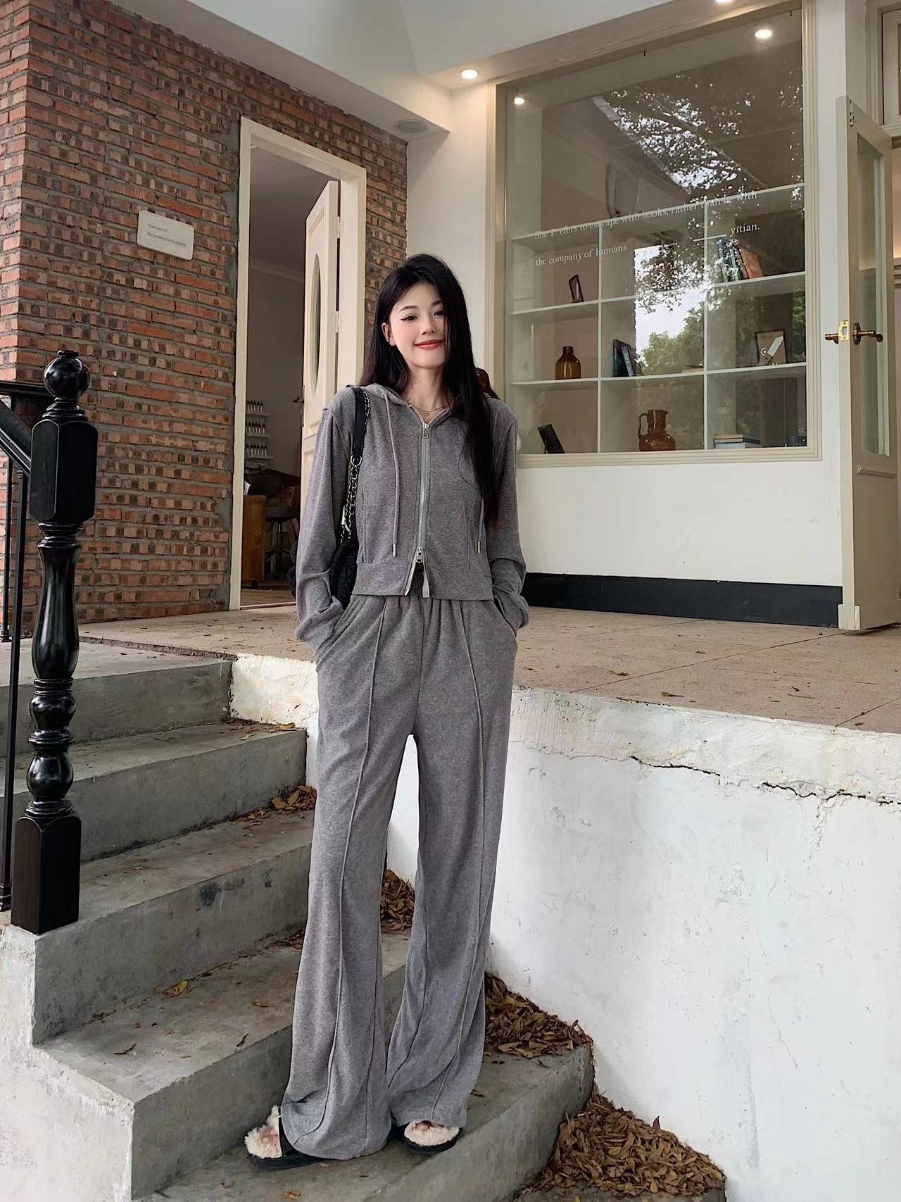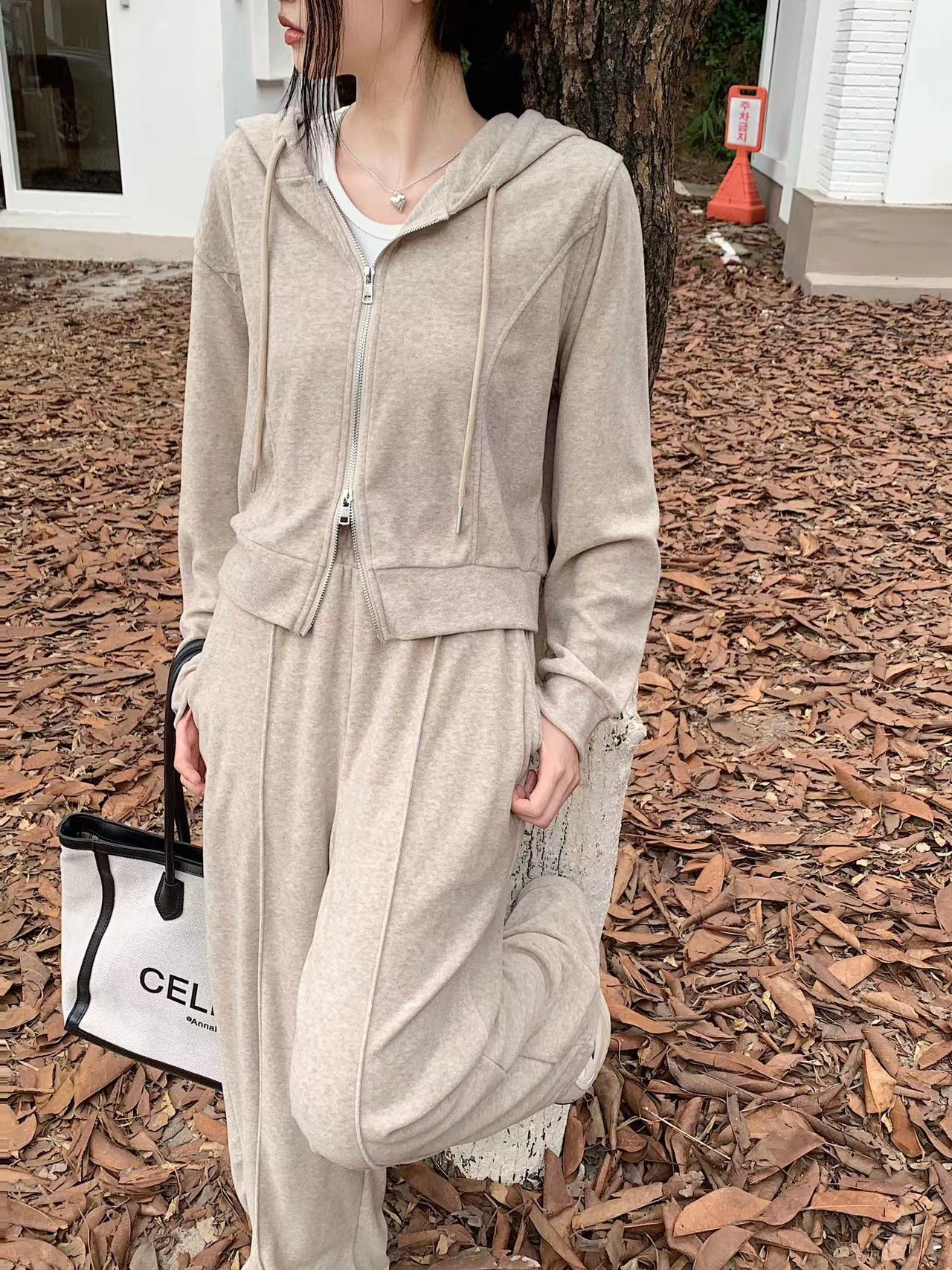 새로운 가을과 겨울 새로운 캐주얼 연령 감소 세트 2024 여성을위한 한국식 스포츠 후드 스웨터 카디건 투피스 세트