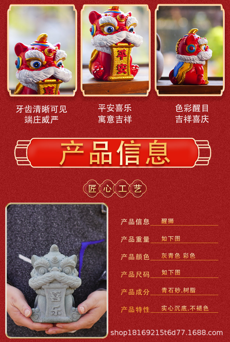 국립 패션 국립 스타일 사자 돌 사자 데스크탑 차 애완 동물 장식 마스코트 수공예 선물 작은 품목 선물스토어 가기