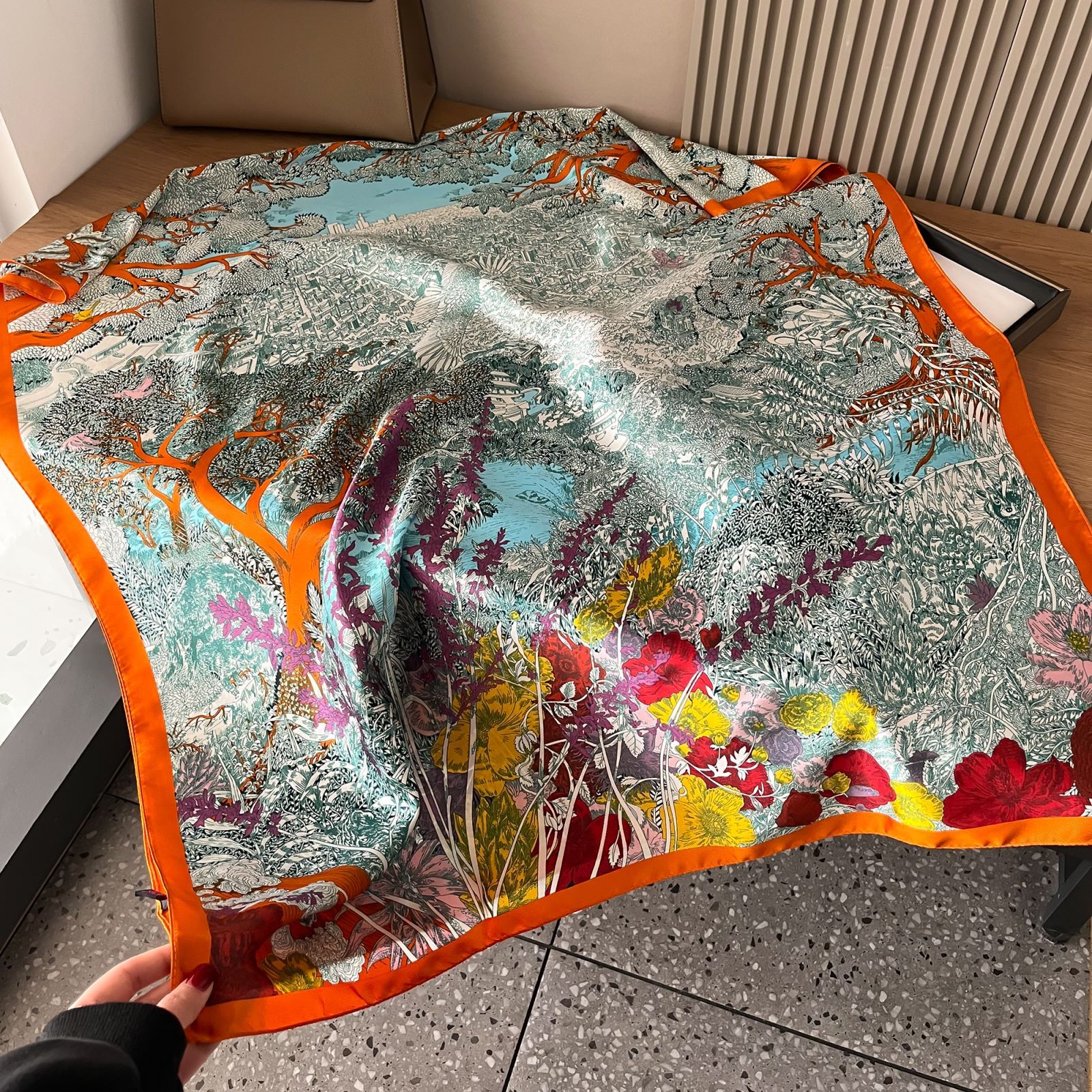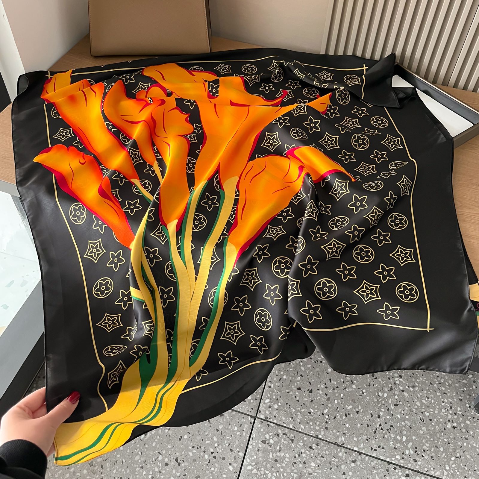 패션 인쇄 새로운 Moire Satin 긴 스카프 에어컨 목도리 선 스크린 대외 무역 헤드 스카프 비치 스카프
