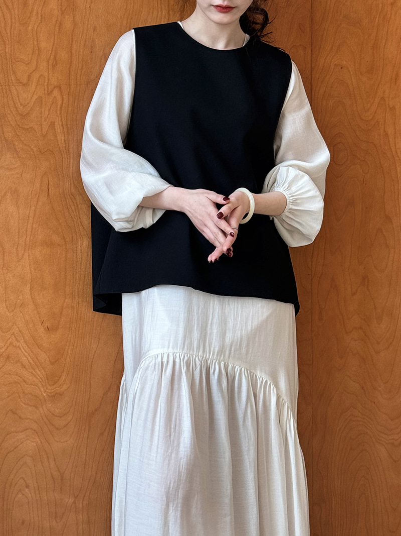 Lushi 가을 신작 여성용 백 슬릿 양복 조끼, 심플하고 패셔너블하며 절묘하고 고급스러운 레이어드 탑 7071