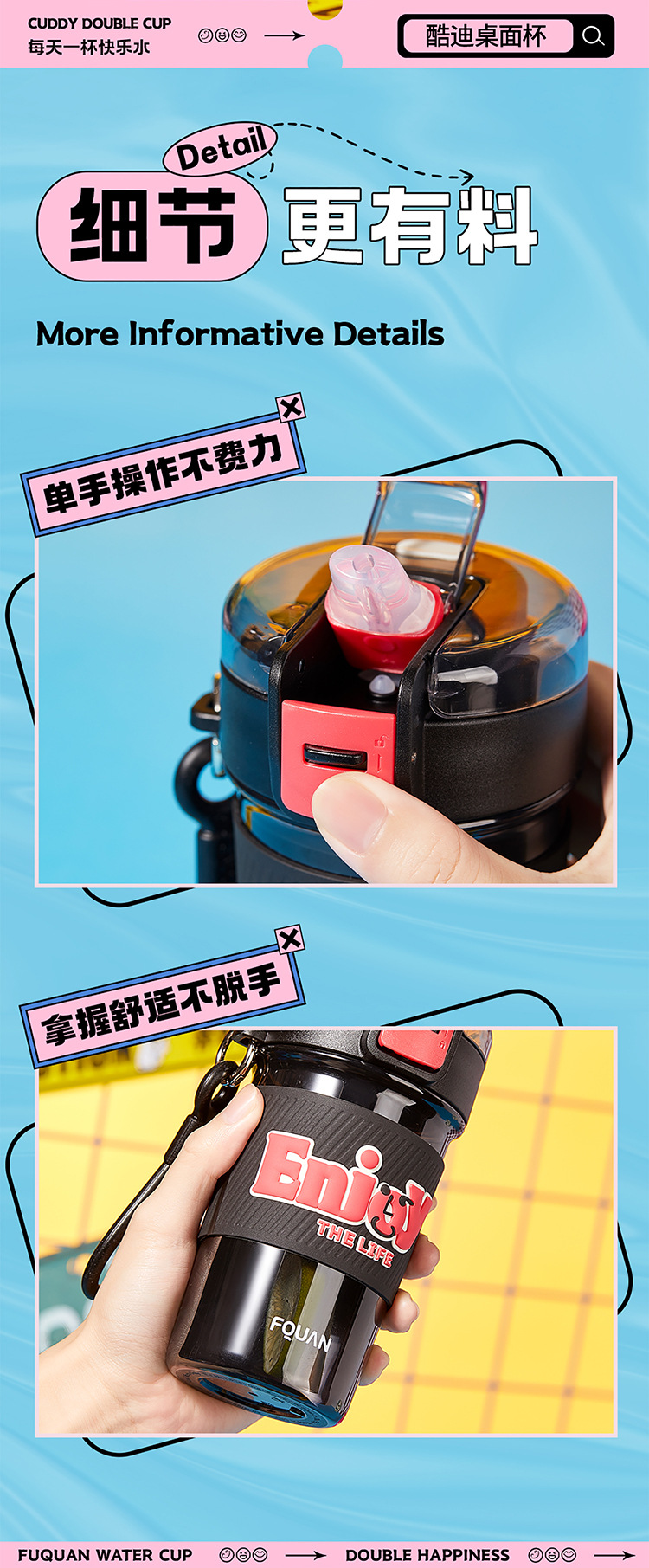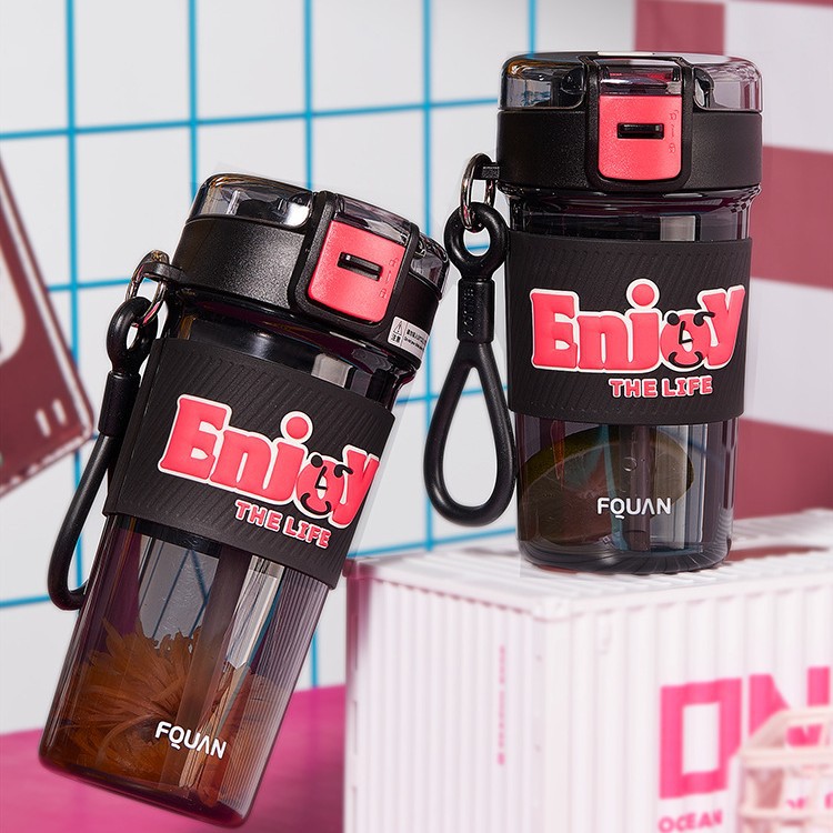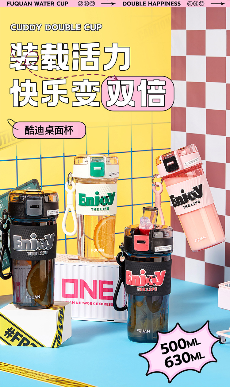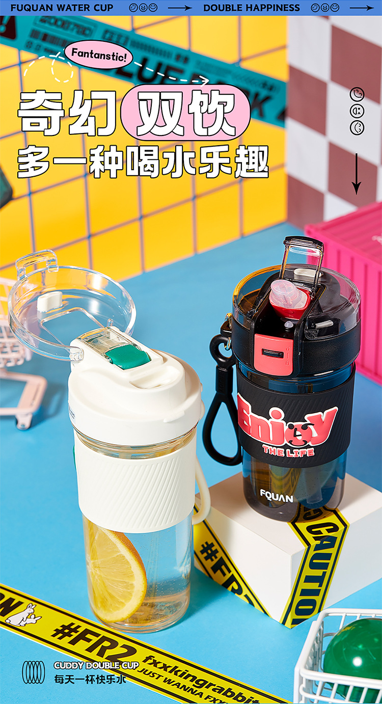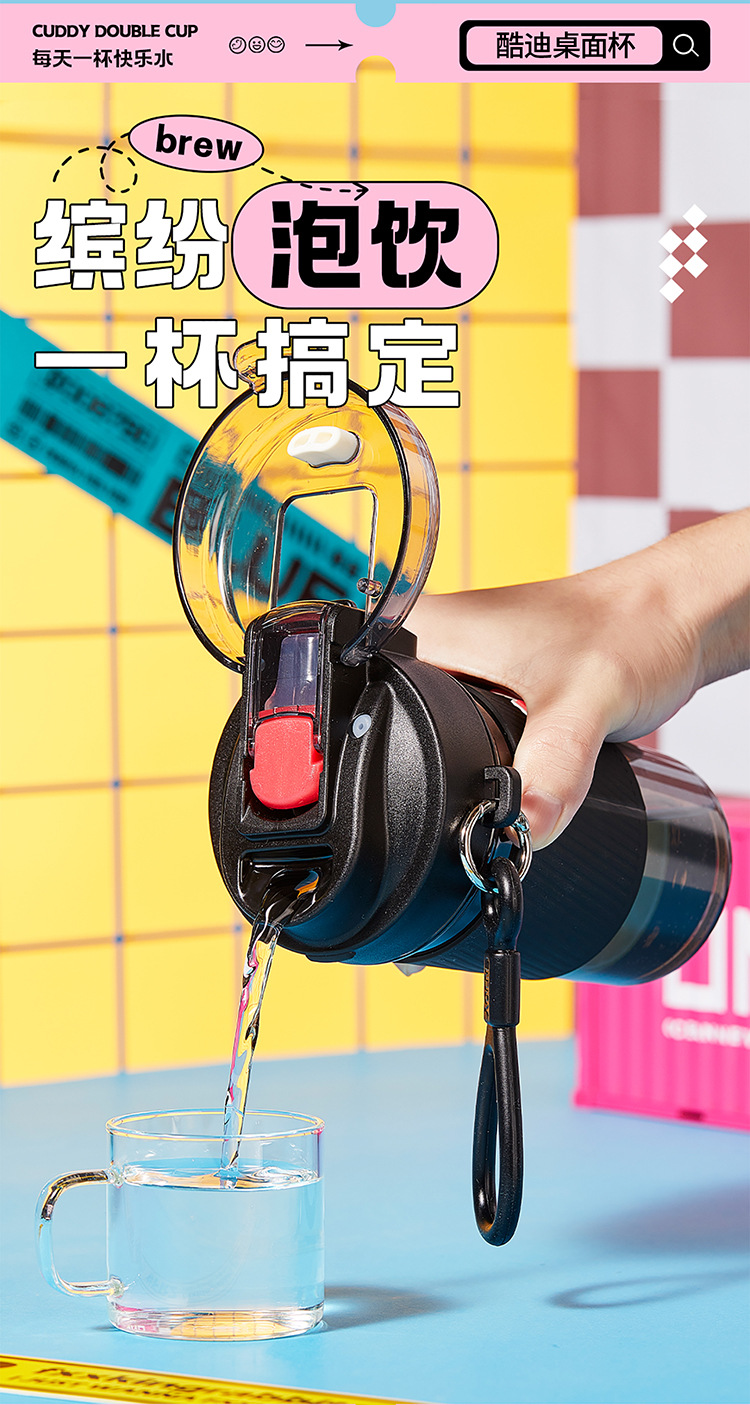 PC 고온 저항 플라스틱 컵 간단한 높은 찾고 여자 물 컵 쿠디 테이블 컵 직접 음료 빨대 이중 사용 휴대용 컵