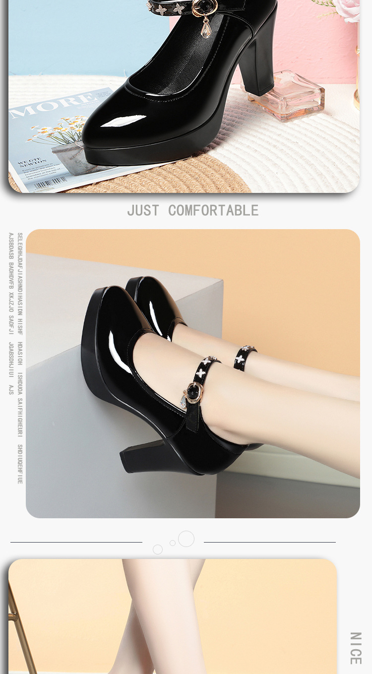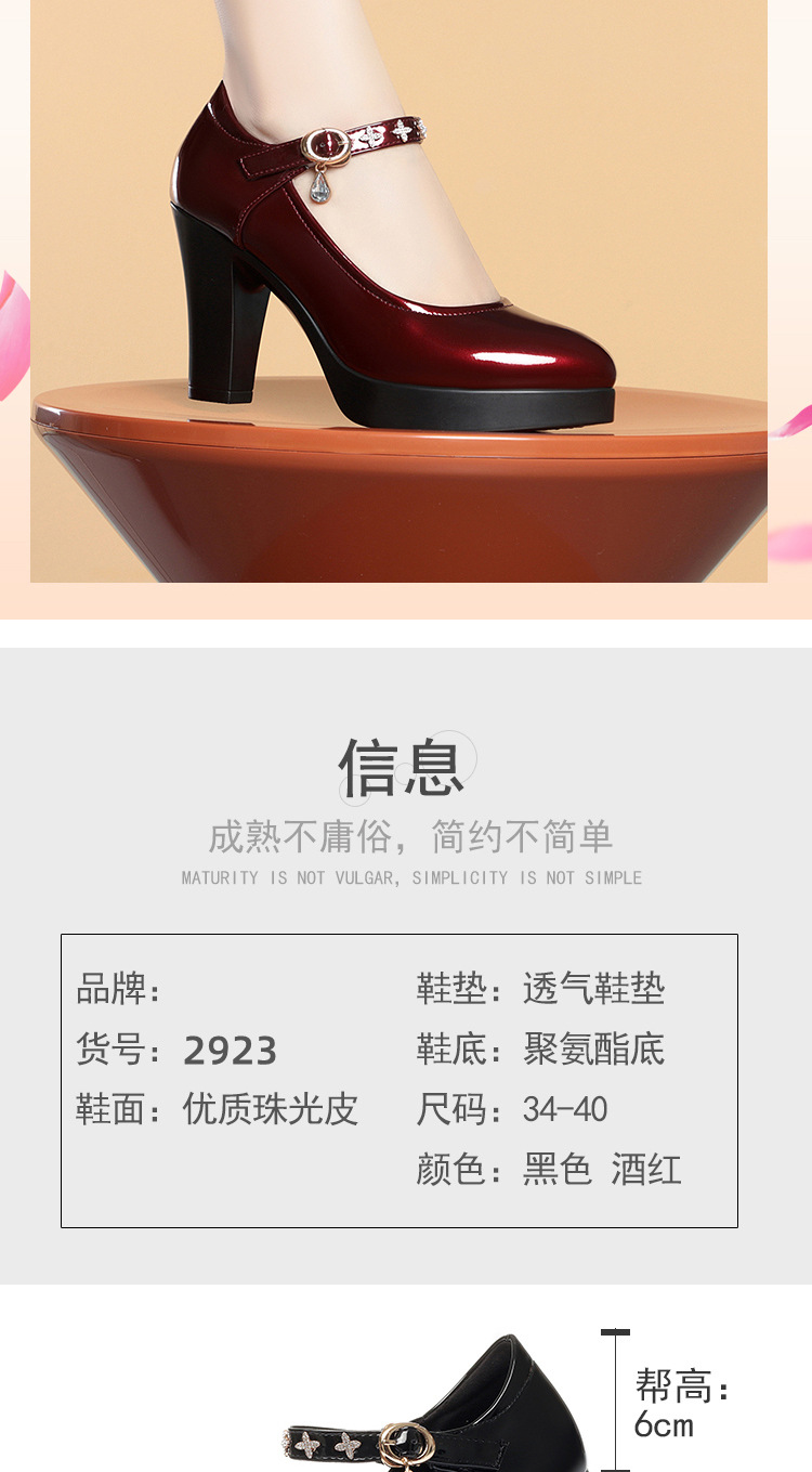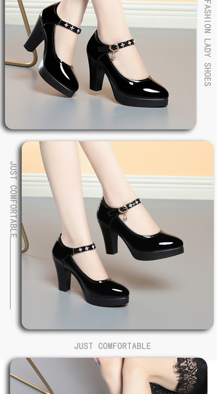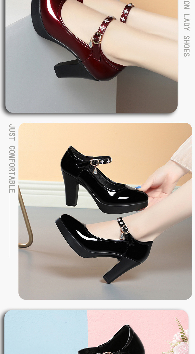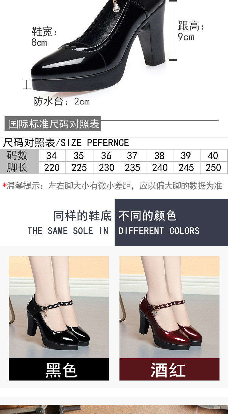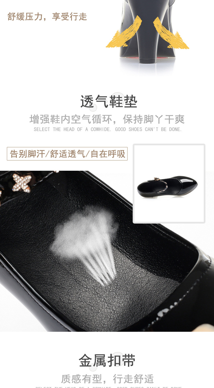 여성 가죽 신발 새로운 특허 가죽 뾰족한 발가락이 피곤하지 않은 싱글 레이어 신발 플랫폼 플랫폼 치파오 특수 캣워크 슈즈가 달린 두꺼운 밑창 하이힐