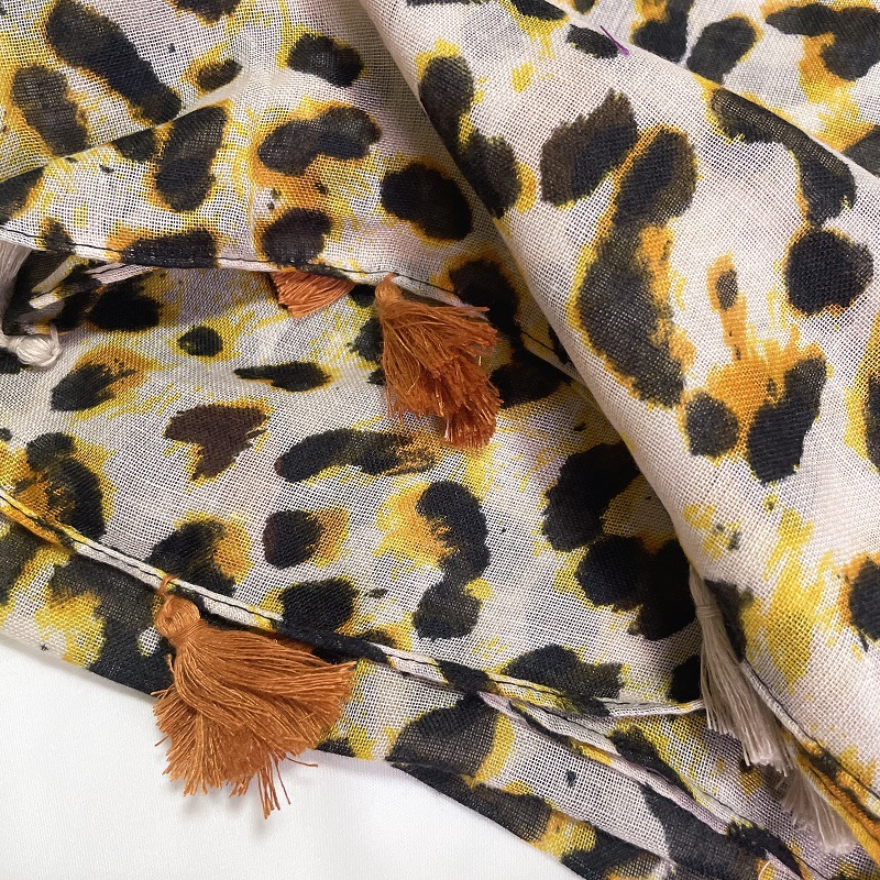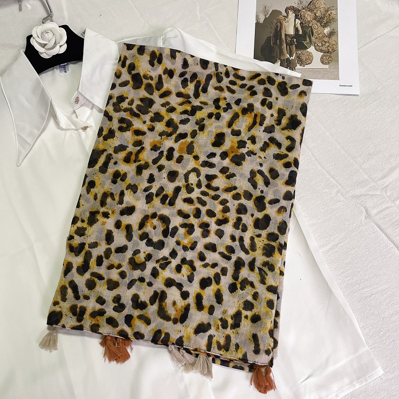 한국식 레오파드 무늬 면화 및 린넨 스카프 여성의 봄과 가을 여행 태양 보호 다목적 스카프 대형 목도리