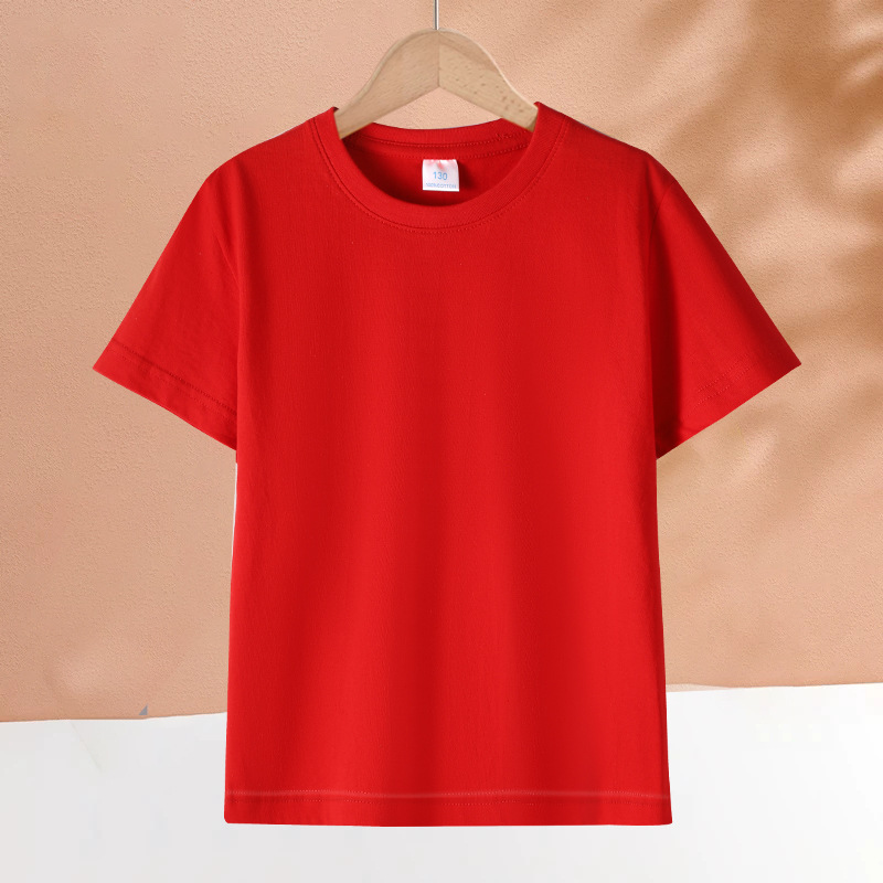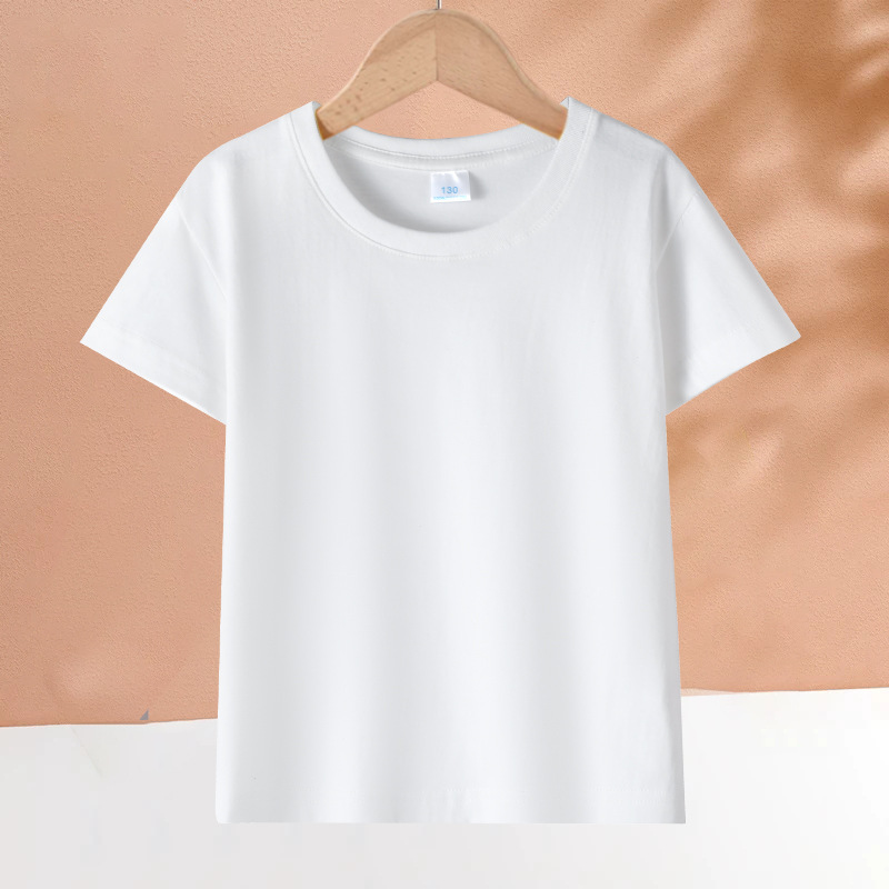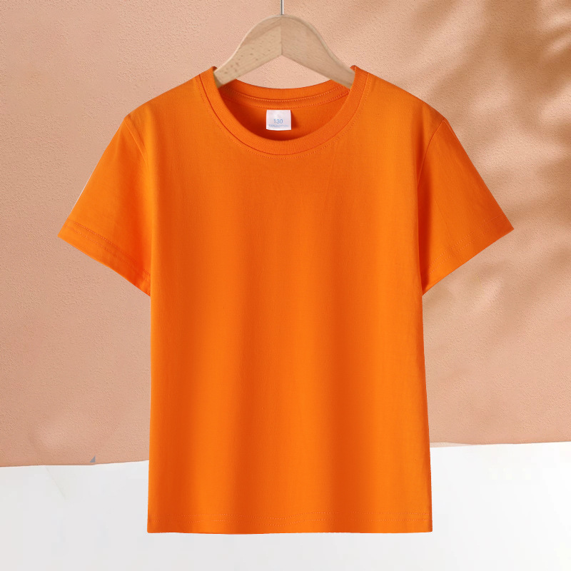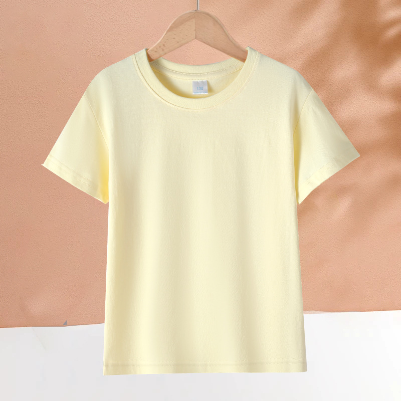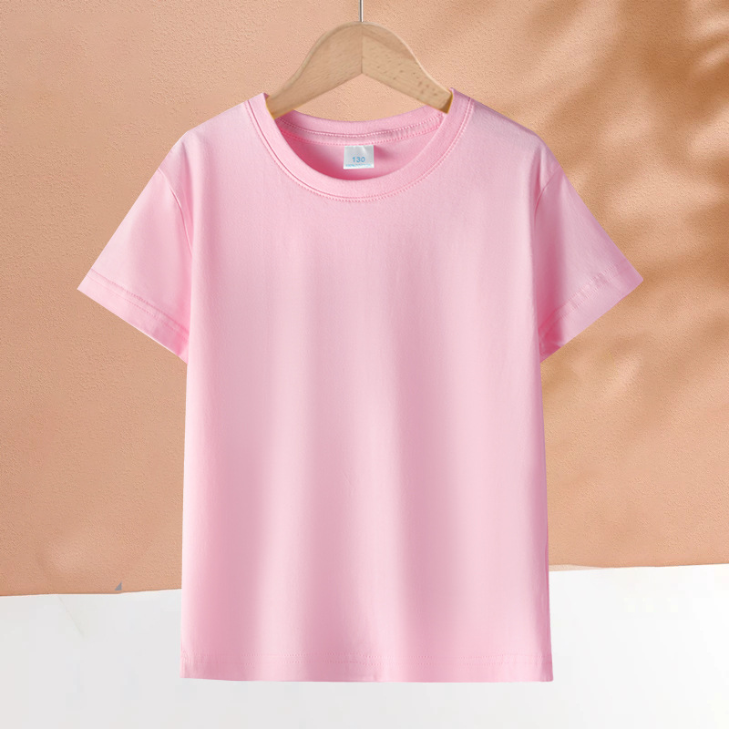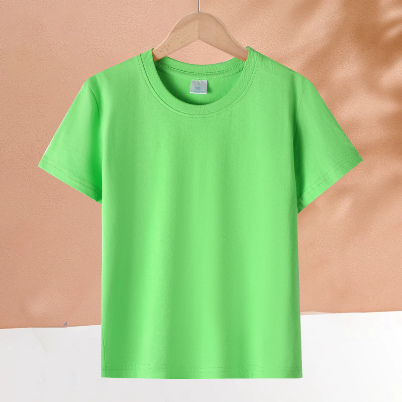 2025 어린이 반팔 티셔츠 순수 코튼 소년과 소녀 솔리드 컬러 기본 라운드 넥 티셔츠 클래스 유니폼 활동복 도매스토어 가기