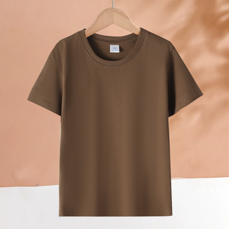 2025 어린이 반팔 티셔츠 순수 코튼 소년과 소녀 솔리드 컬러 기본 라운드 넥 티셔츠 클래스 유니폼 활동복 도매