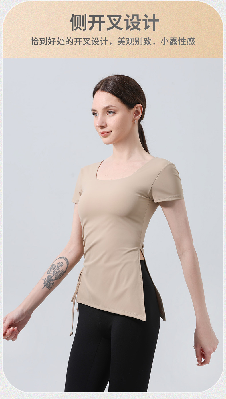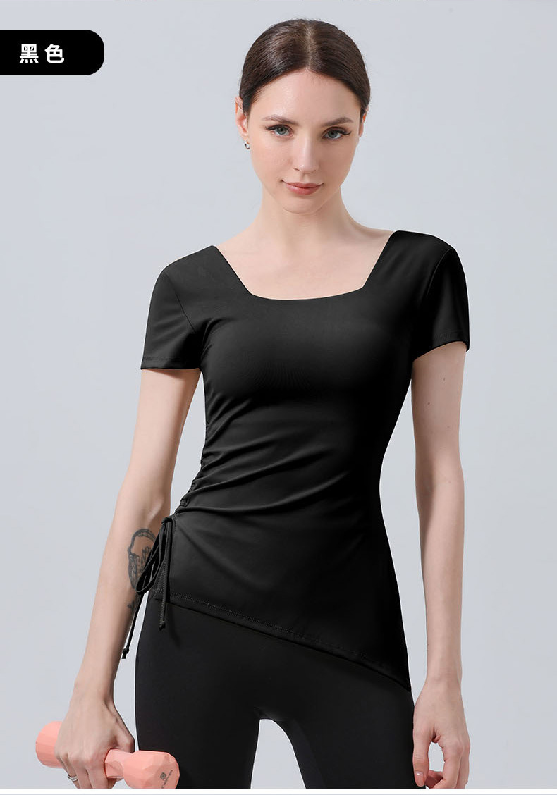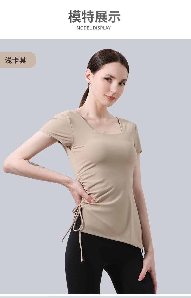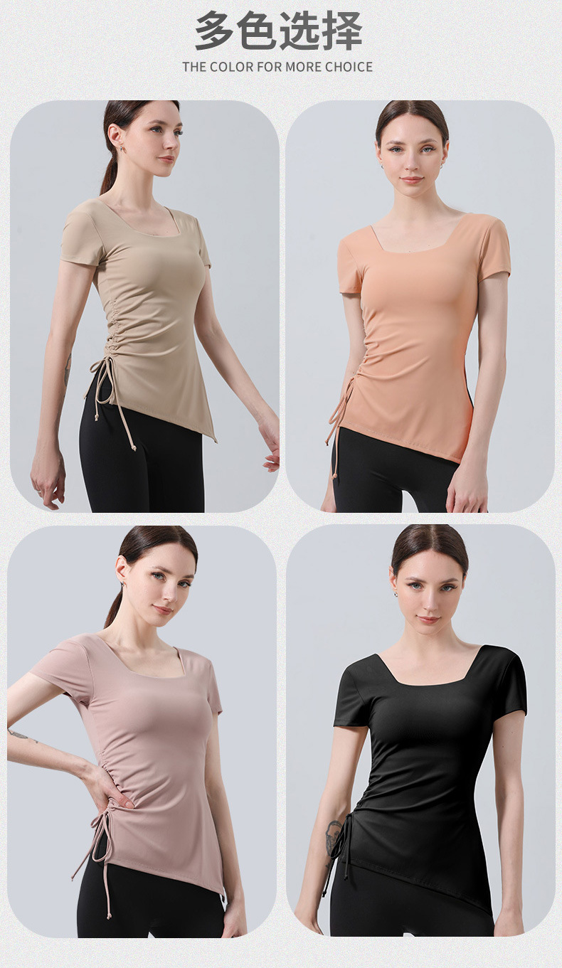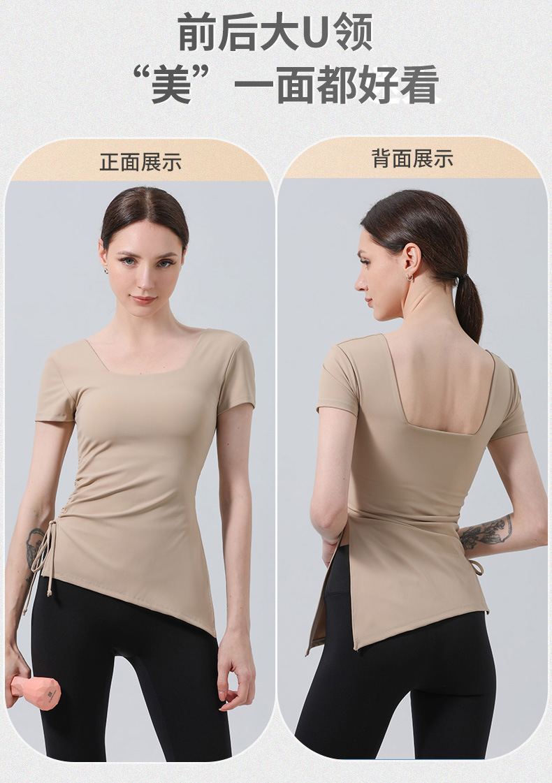 새로운 고급 사각 칼라 뷰티 백 요가 티셔츠 여성 고정 원피스 컵 달리기 피트니스 옷 필라테스 훈련 복