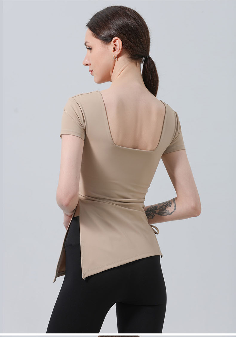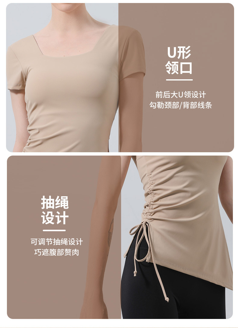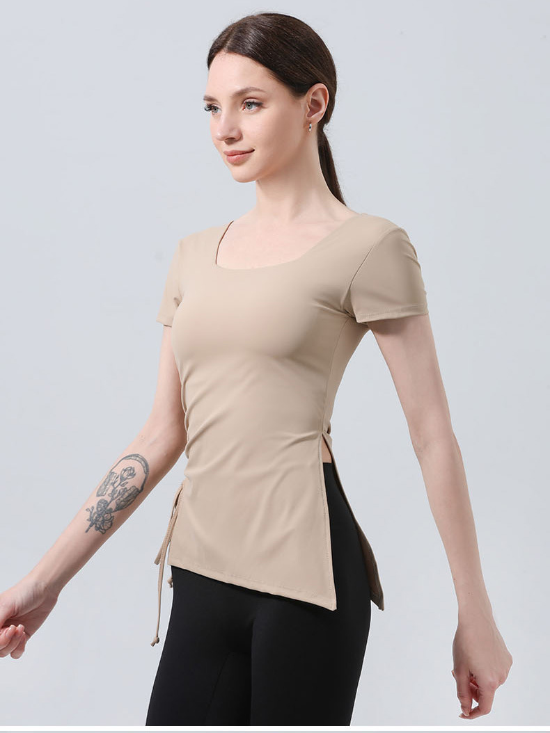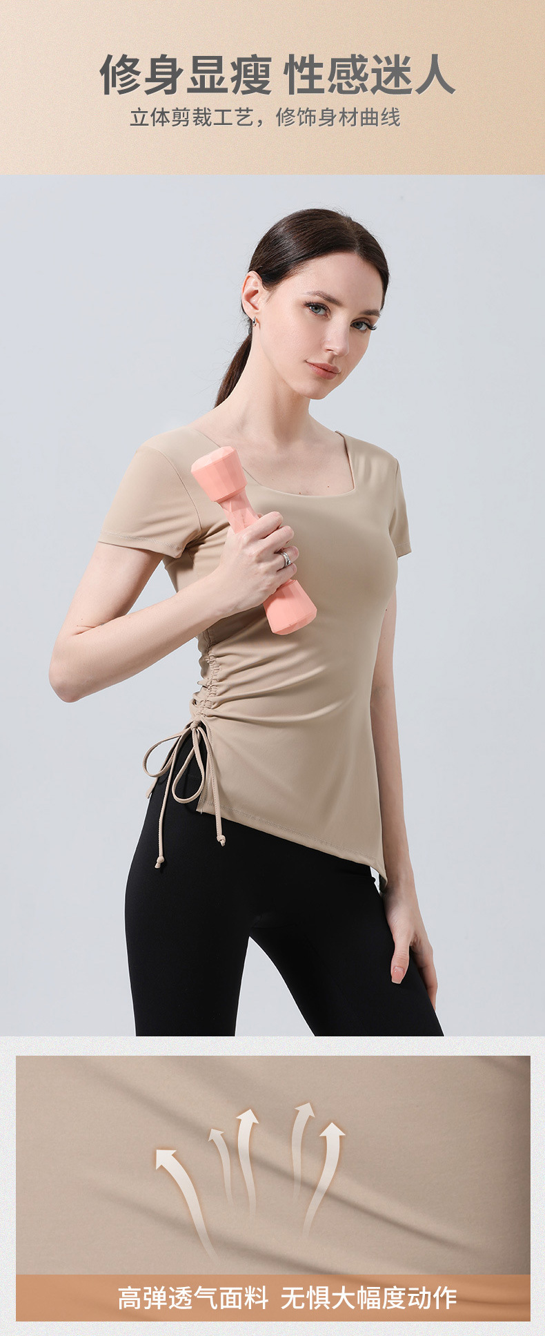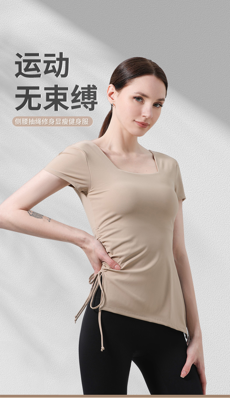 새로운 고급 사각 칼라 뷰티 백 요가 티셔츠 여성 고정 원피스 컵 달리기 피트니스 옷 필라테스 훈련 복