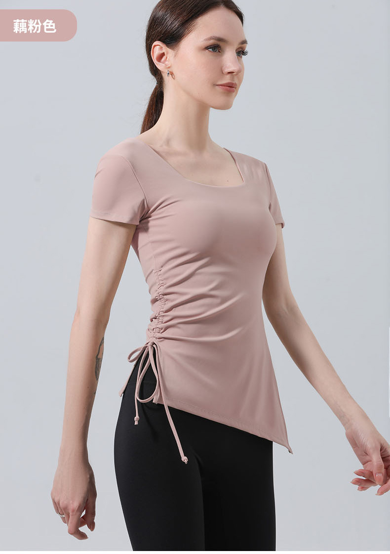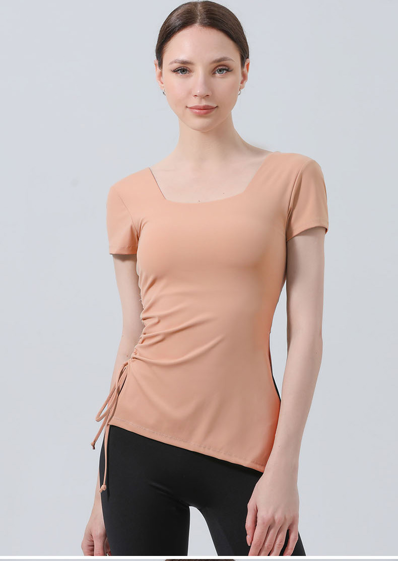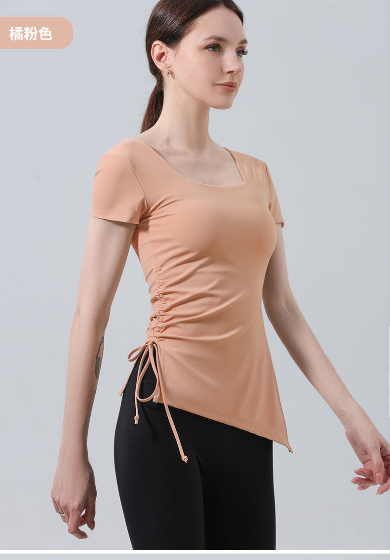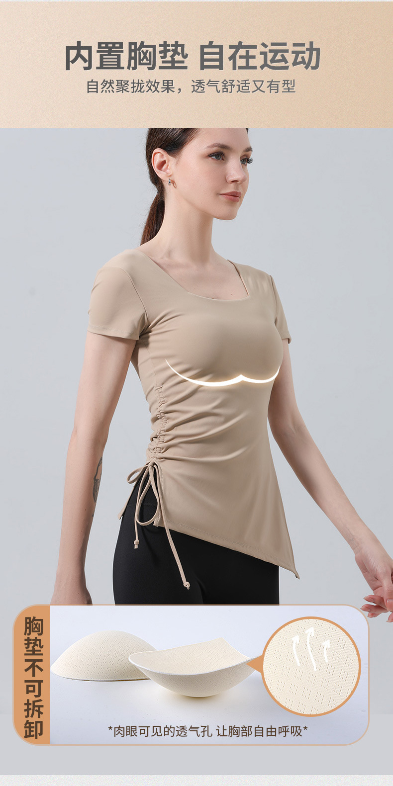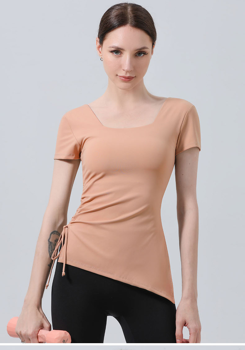 새로운 고급 사각 칼라 뷰티 백 요가 티셔츠 여성 고정 원피스 컵 달리기 피트니스 옷 필라테스 훈련 복