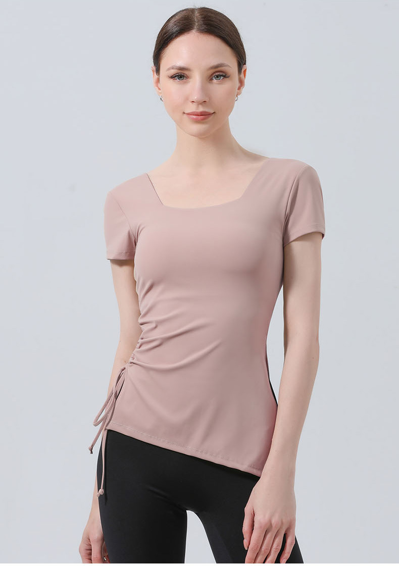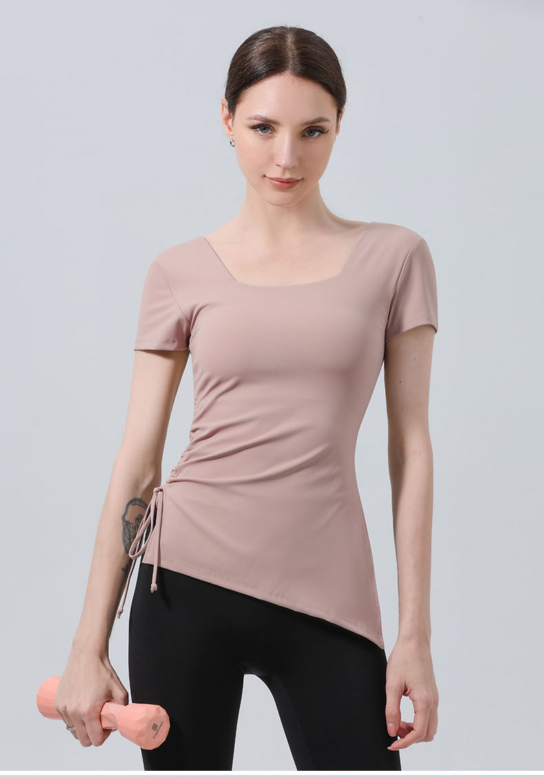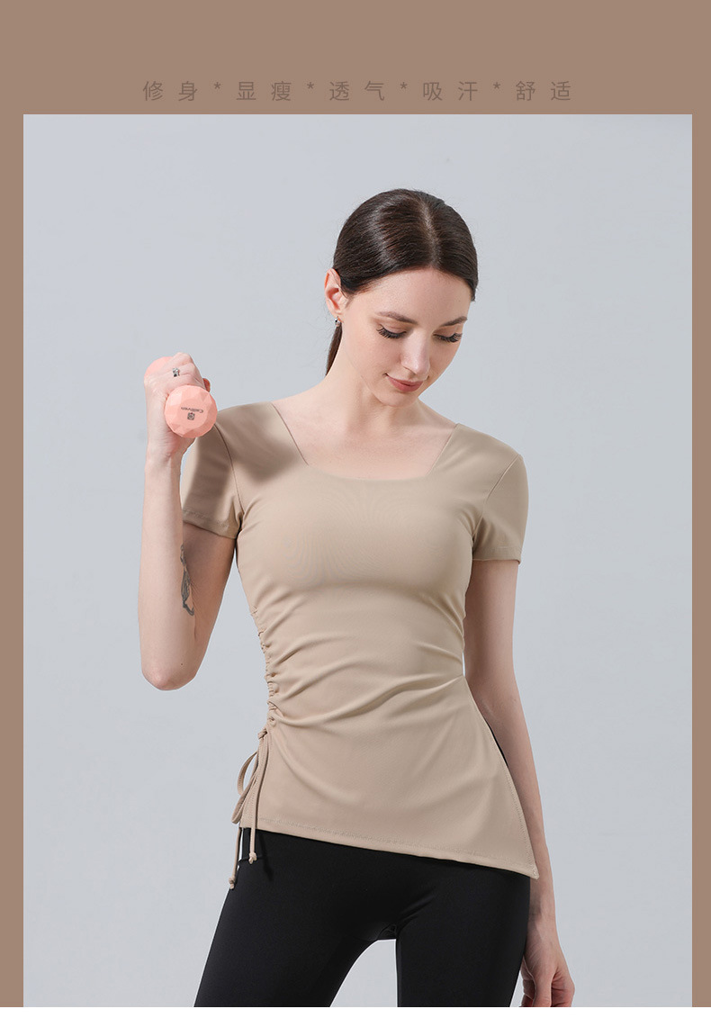 새로운 고급 사각 칼라 뷰티 백 요가 티셔츠 여성 고정 원피스 컵 달리기 피트니스 옷 필라테스 훈련 복스토어 가기