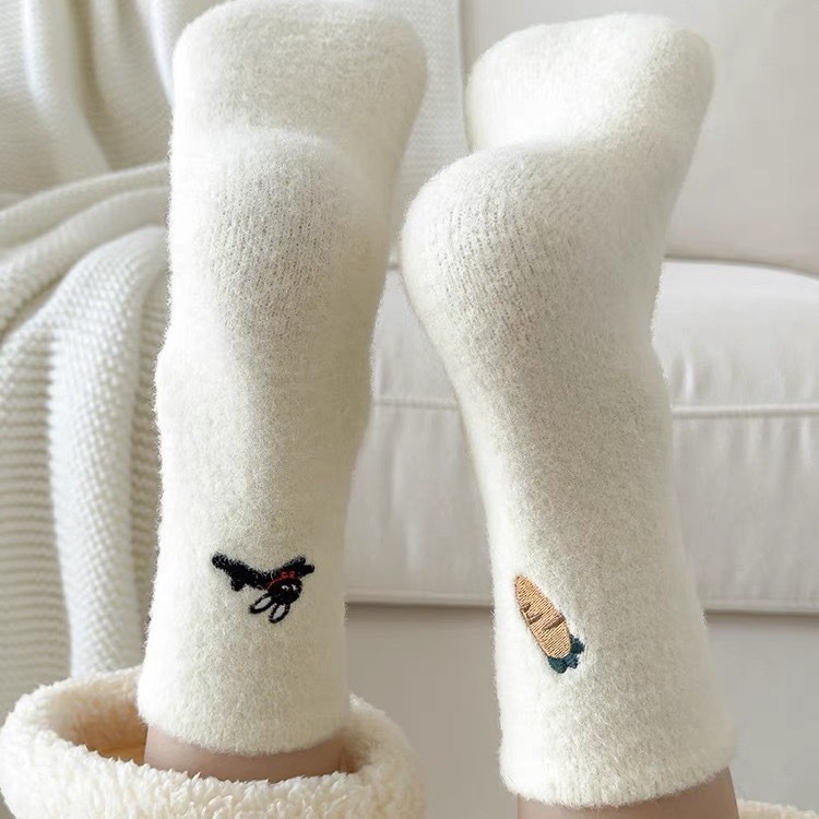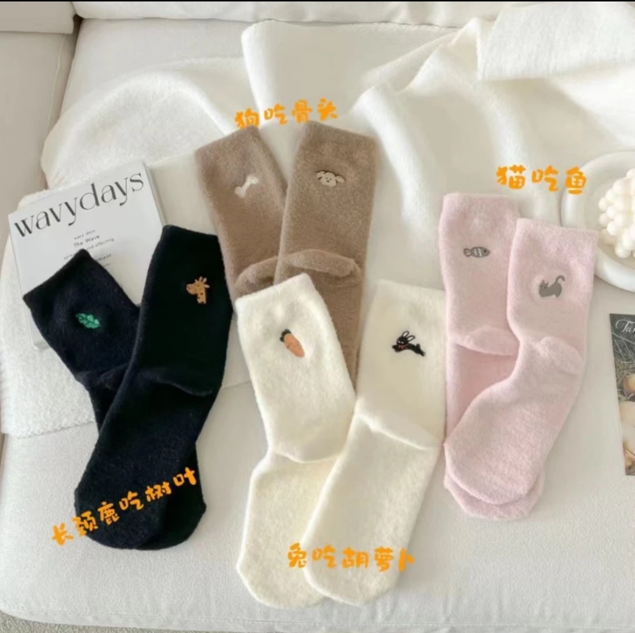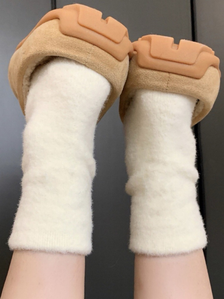 가을 겨울 두꺼운 호주산 양털 단색 중목 양말 여성용 한국 스타일 벨벳 커피색 시리즈 산후 양말 캐주얼스토어 가기