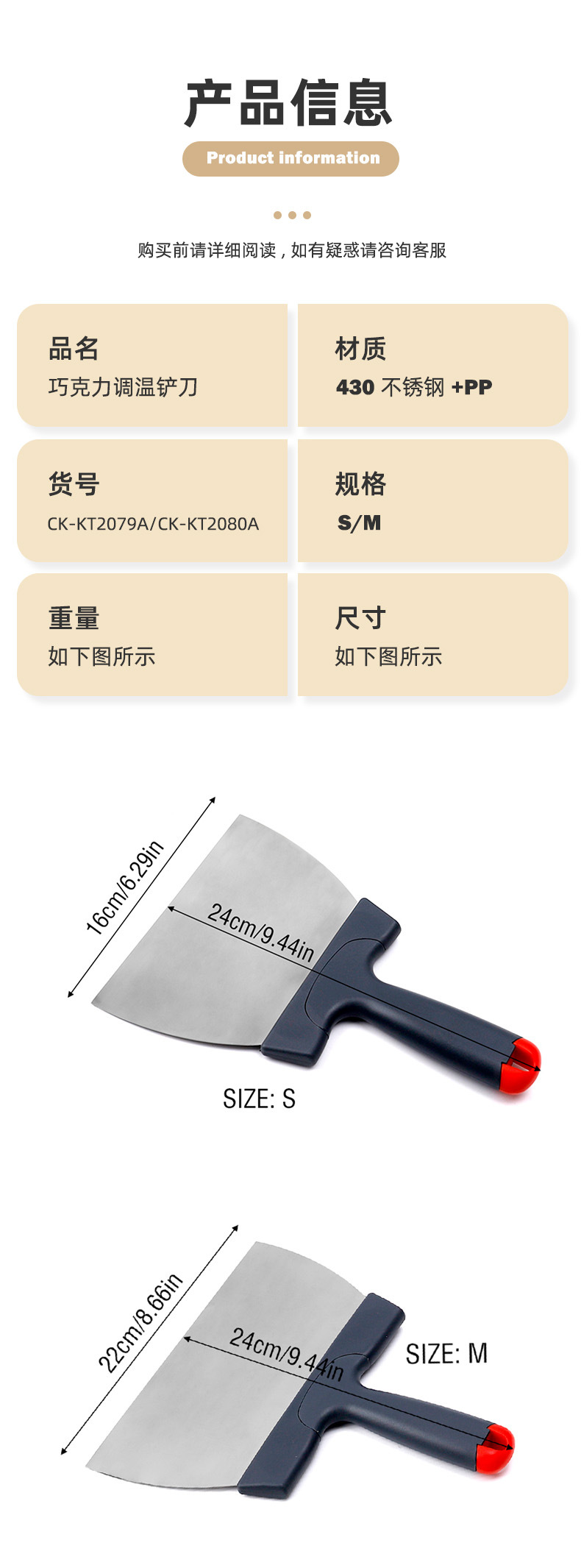 국경 간 뜨거운 판매 초콜릿 온도 조절기 삽 스테인레스 스틸 반죽 절단 밀가루 스크레이퍼 크림 스크레이퍼 베이킹 도구 재고스토어 가기